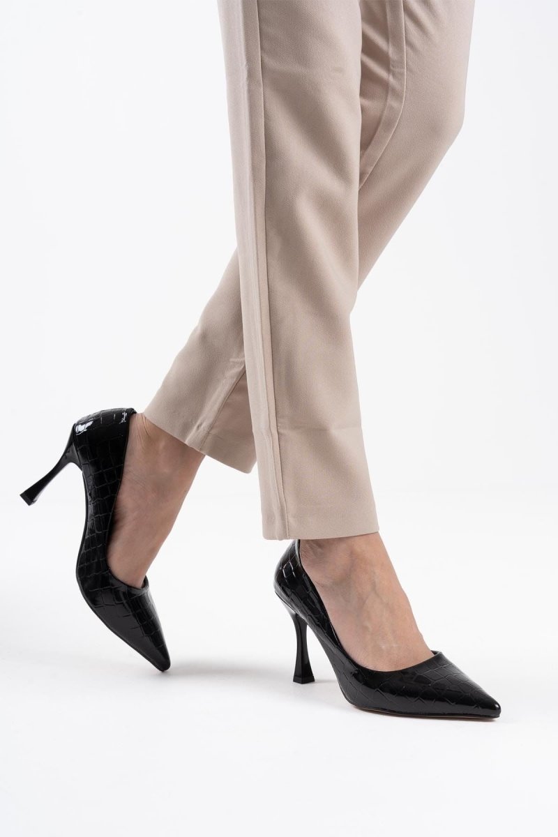 Scarpax Harper Kadın Siyah Kroko Rugan Stiletto