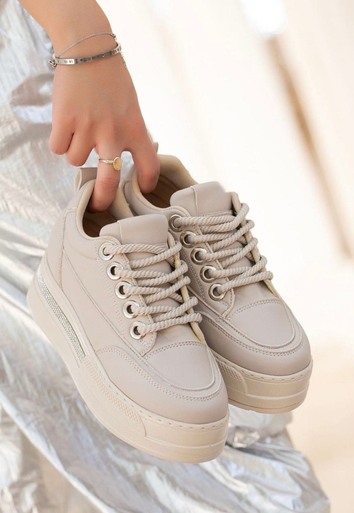 Scarpax Lulu Bej Cilt Bağcıklı Spor Ayakkabı