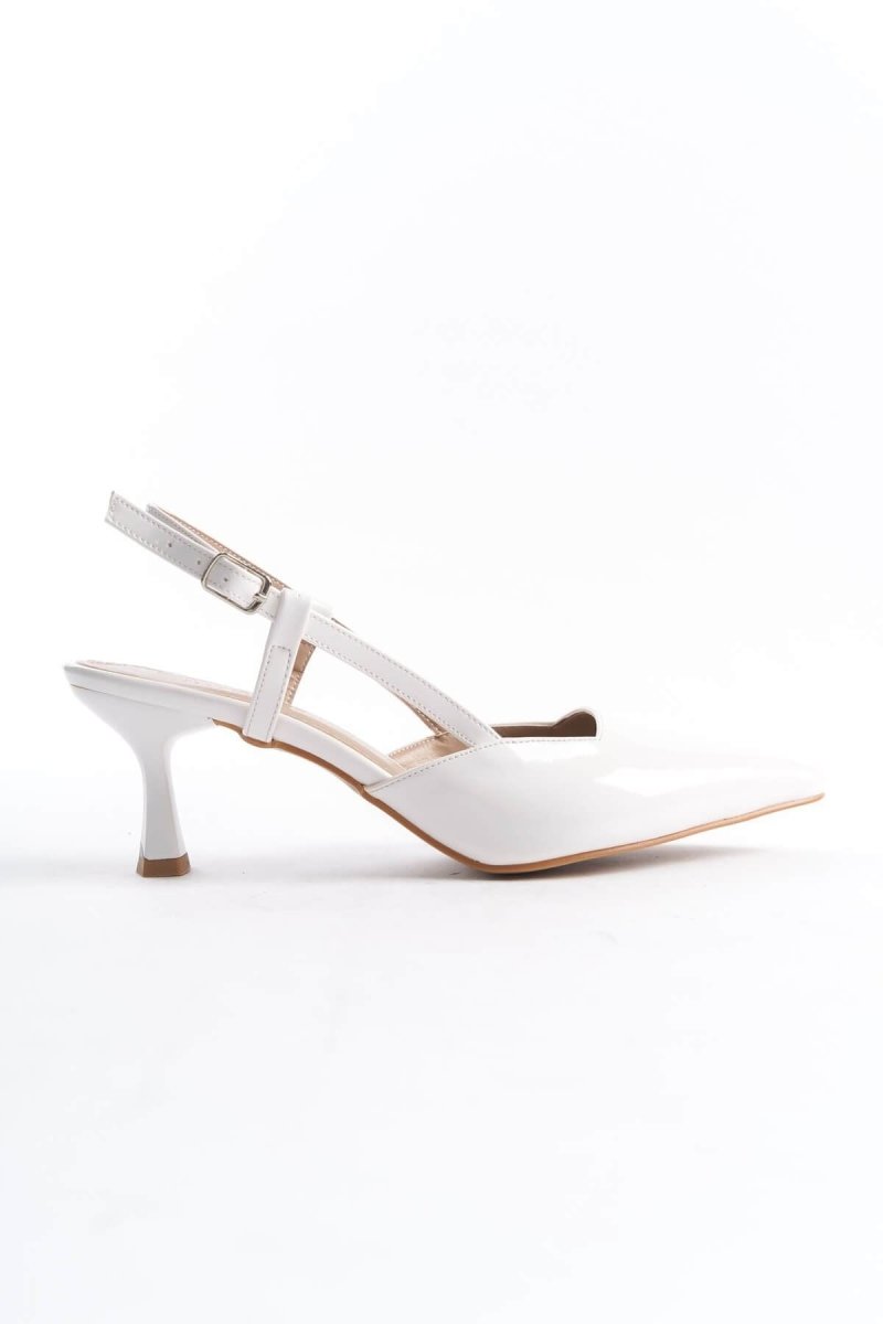 Die Highlights der Scarpax Mira Damen-High-Heel-Schuhe aus weißem Lackleder sind: