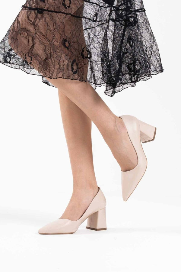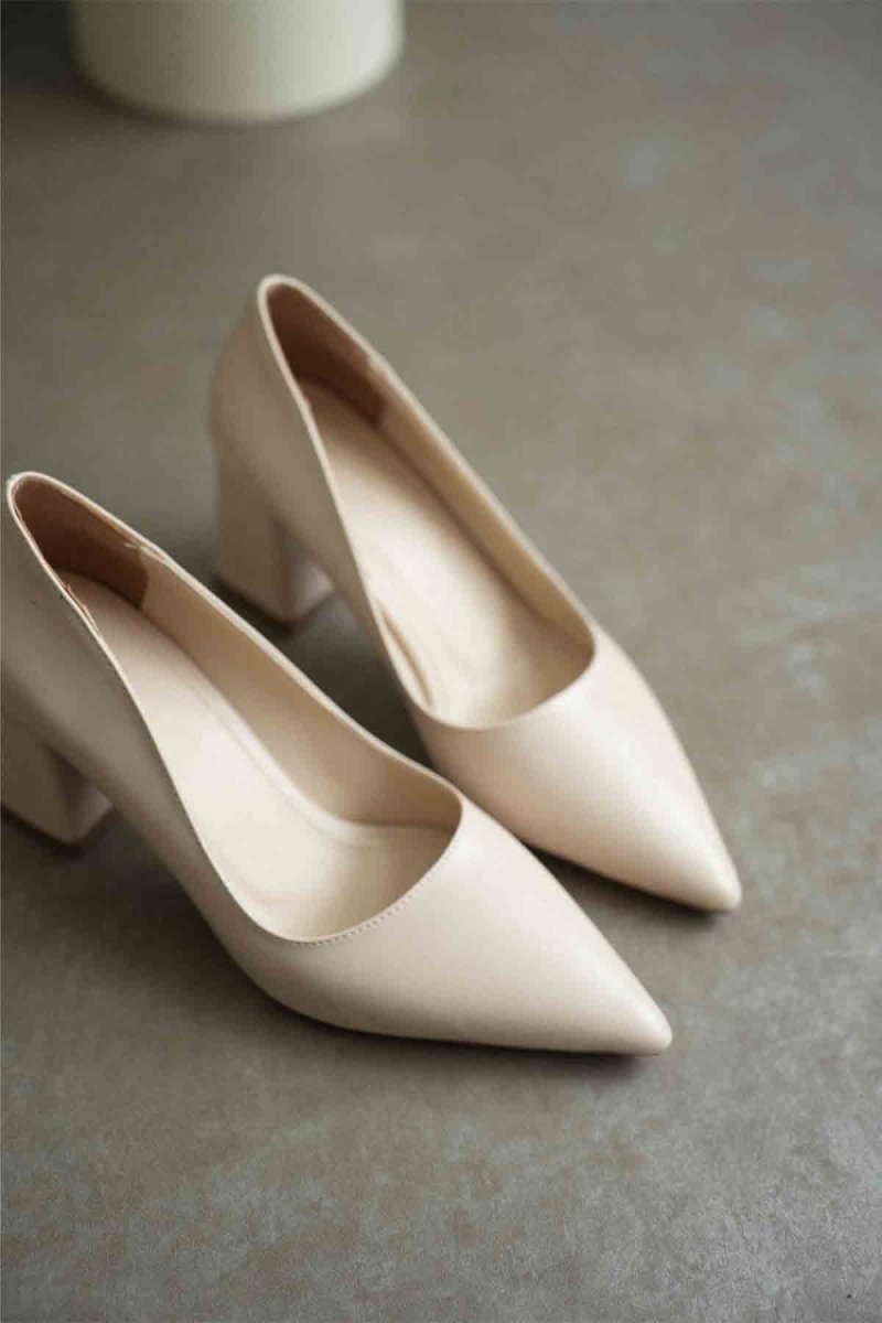 Scarpax Valeria Bej Cilt Kadın Topuklu Ayakkabı