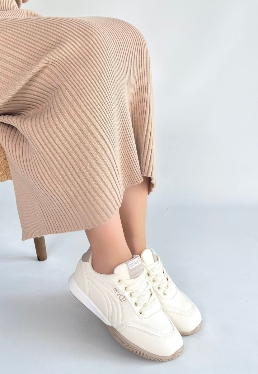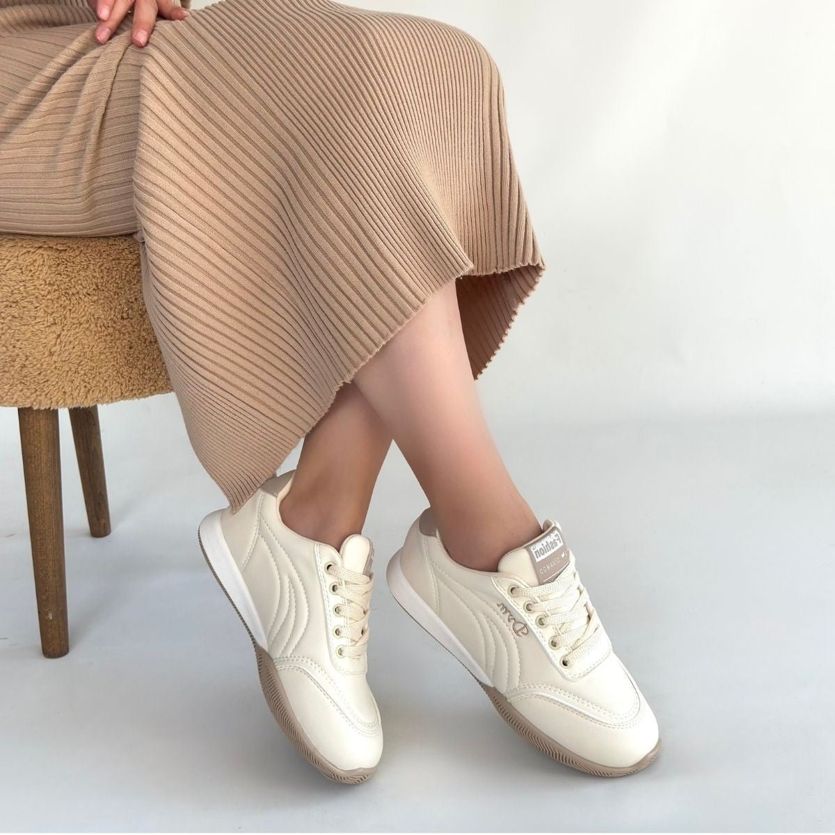 Scarpax Tawen Beige Skin Lace-Up Sneakers