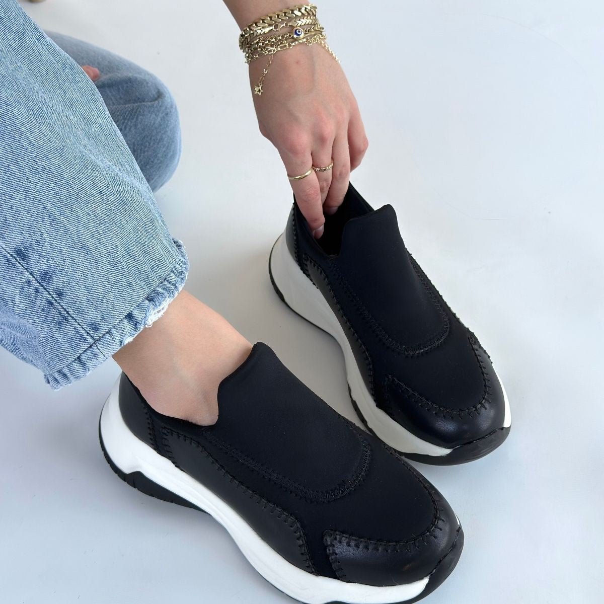 These shoes, designed for comfortable walking and daily activities, are designed with a precise fit for standard foot sizes. The Scarpax Kendy Black Leather Sneakers are the perfect choice to complete your style, offering both elegance and comfort.
