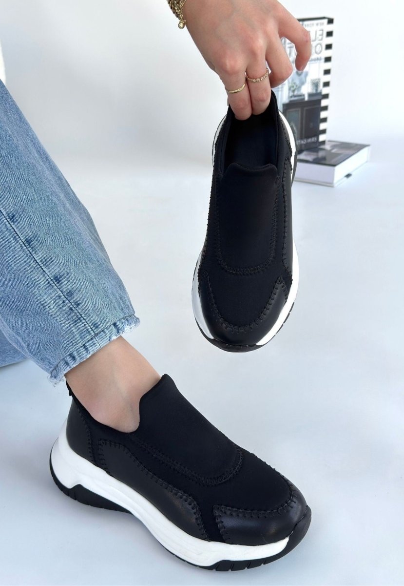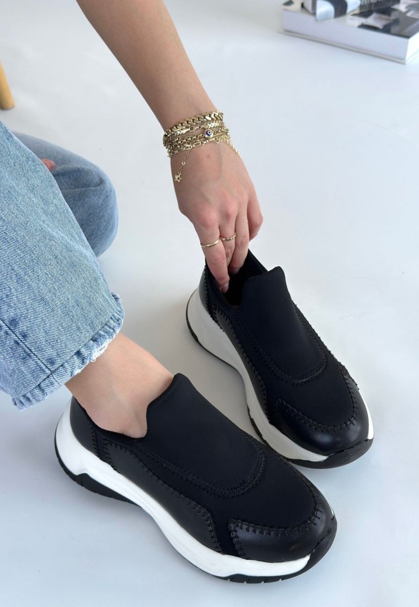 Scarpax Kendy Black Leather Sneakers - Orthopedic 4 cm Heel, Poly Sole and Special Insole