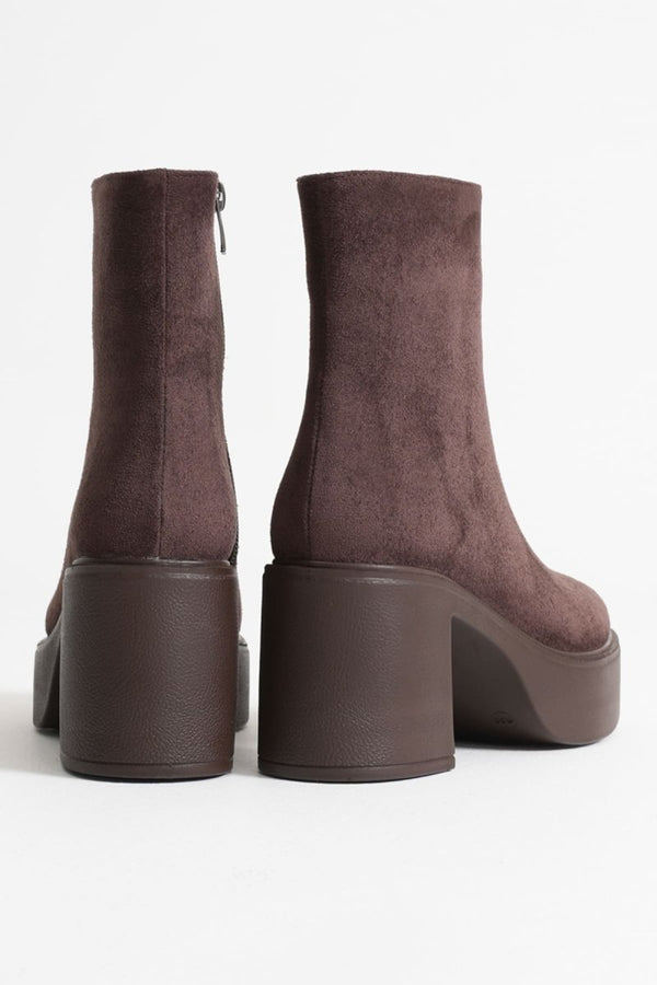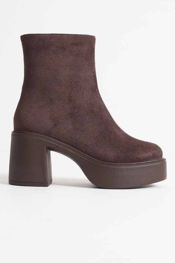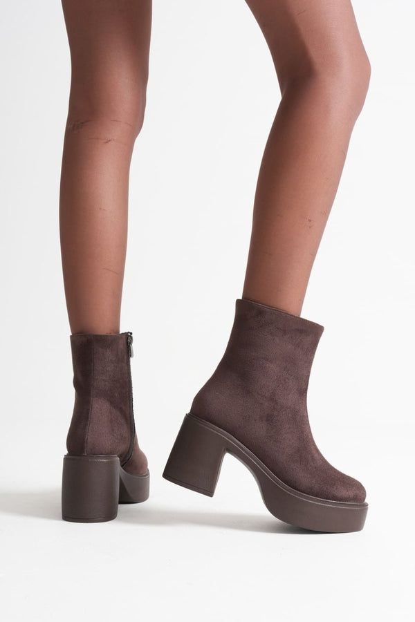 The SCARPAX Keti women's dark brown suede heeled boot is an elegant and comfortable option to complete your style. This chic design prioritizes comfort and elegance for everyday wear or special occasions. The suede material offers a sophisticated look while comfortably hugging your feet.