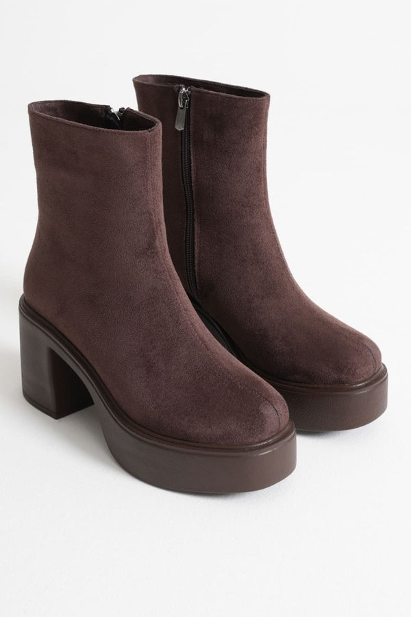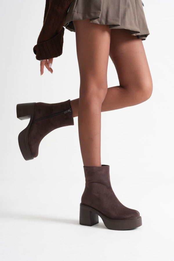 SCARPAX Keti Women's Bitter Brown Suede Heeled Boots - Stylish Design, Comfortable Use