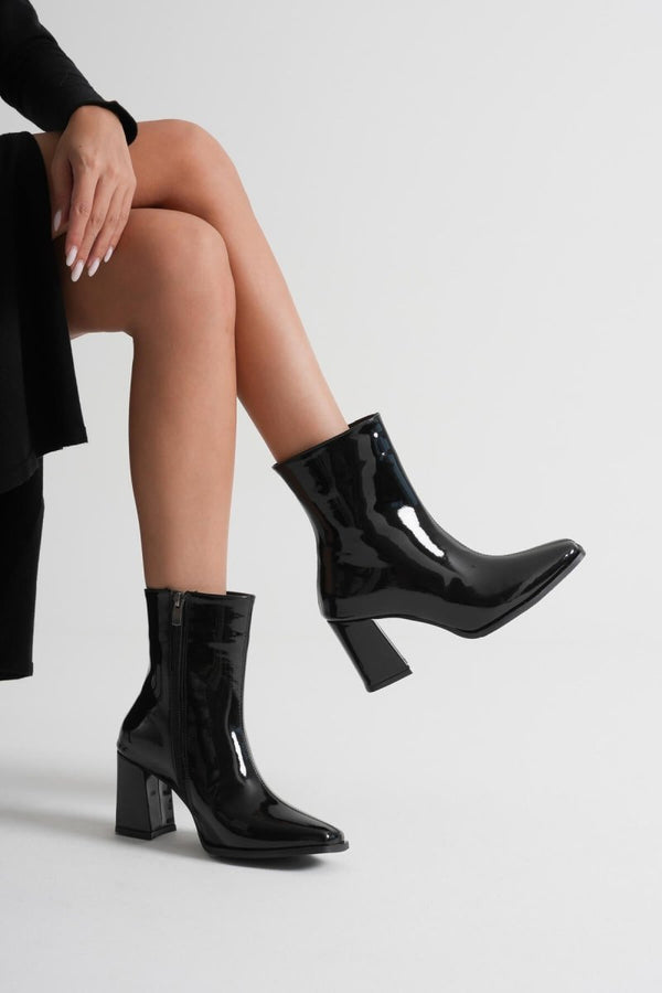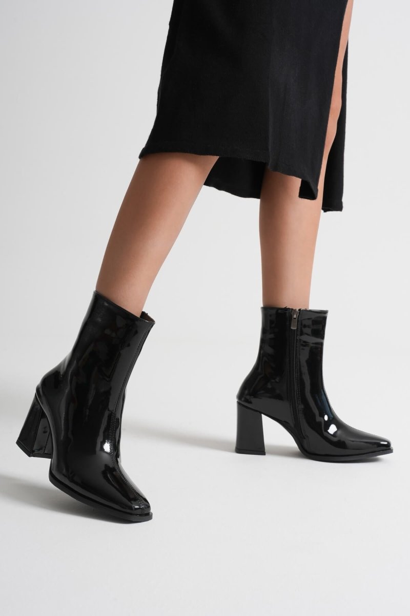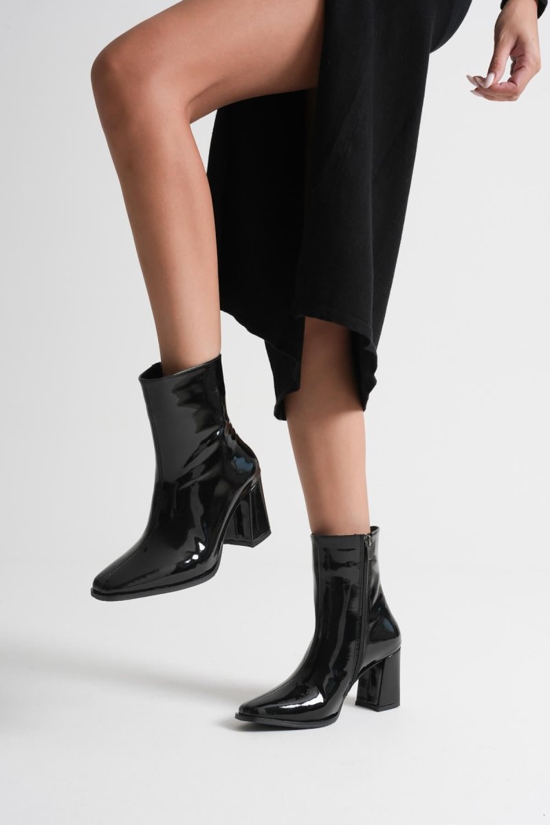 Scarpax Muso Kadın Siyah Rugan Topuklu Bot