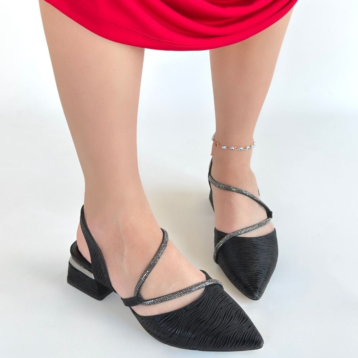 Combining elegance and comfort, the Scarpax Utana Black Leather Glitter Heeled Shoes are a must-have in every woman's shoe collection. Perfect for everyday wear or special occasions, these shoes stand out with their elegant design.