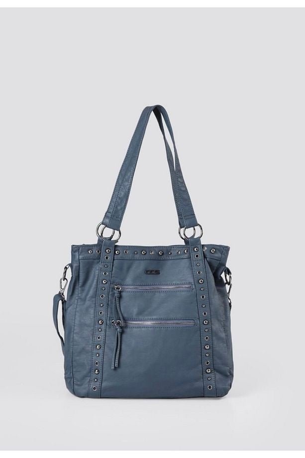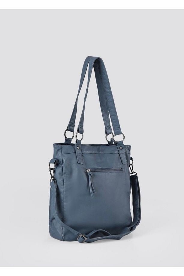 Scarpax Çetya Mavi Kadın Omuz Çantası - 2 Fermuarlı Bölme, Yıkama Deri, Pratik Tasarım