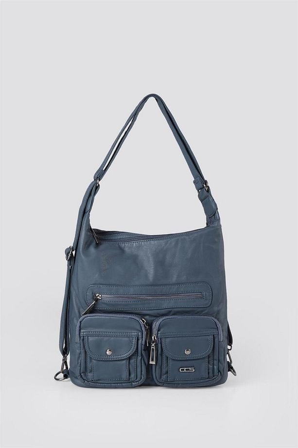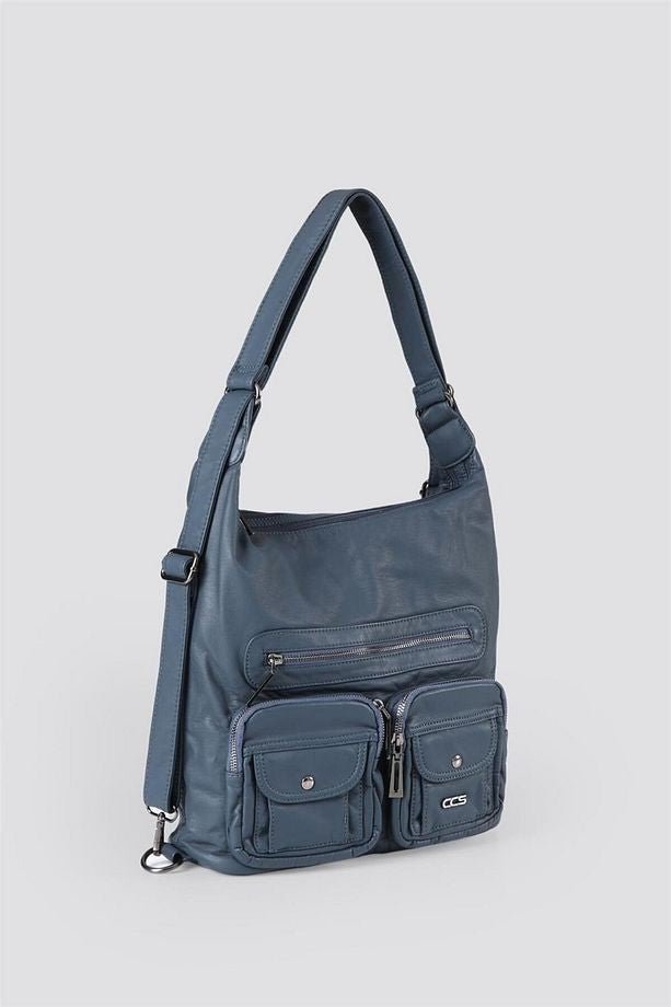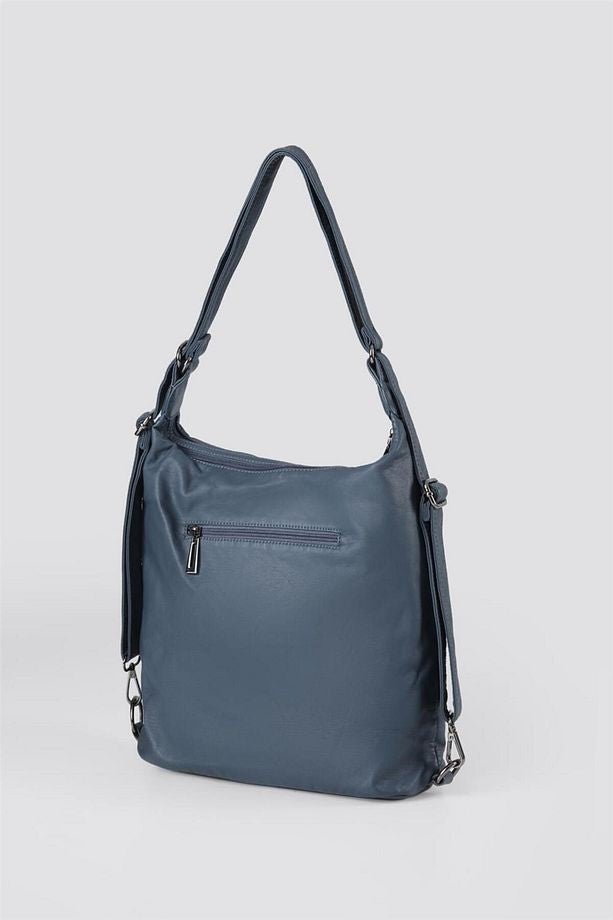 Scarpax Kinya Mavi Kadın Omuz Çantası - Yıkanabilir Deri, 2 Fermuarlı Ana Bölme, 7 Cep