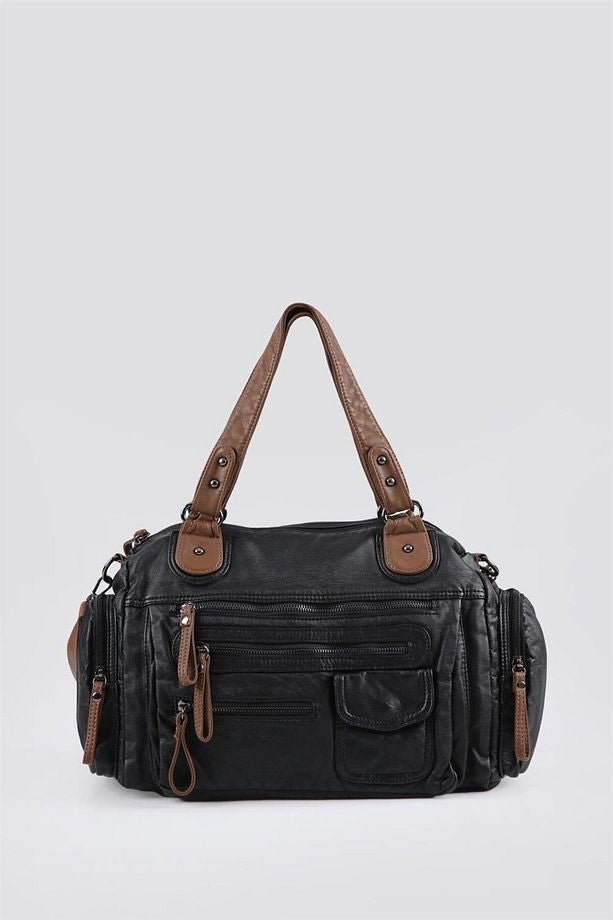 Scarpax Orten Siyah Cilt Omuz Çantası
