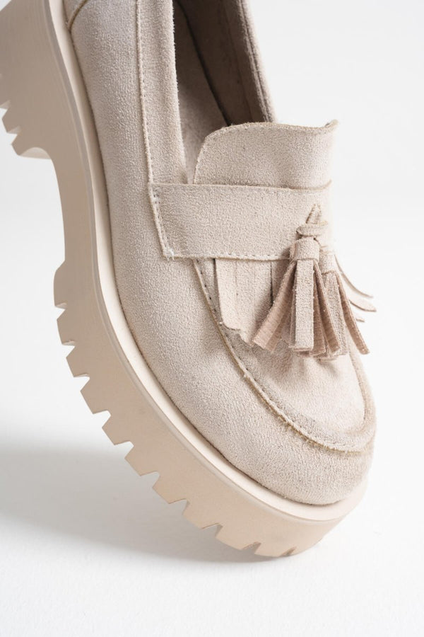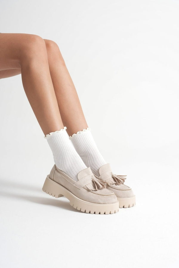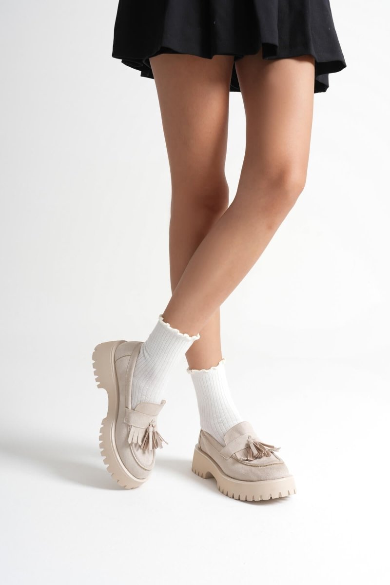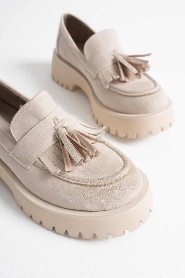 Scarpax Mina Kadın Günlük Bej Süet Loafer Ayakkabı
