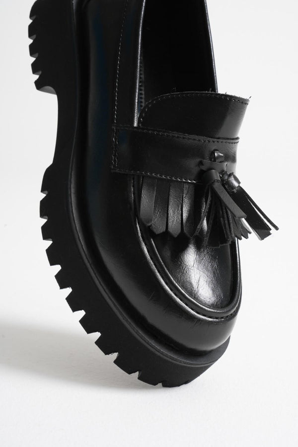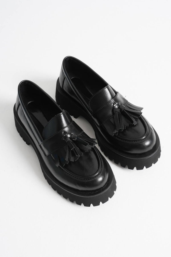 Mina lofer ayakkabının siyah rengi, her kombinle uyum sağlarken, klasik tasarımıyla zamansız bir stil sunar. Yumuşak ve kaliteli malzemelerden üretilen bu ayakkabılar, uzun süreli kullanım için idealdir.