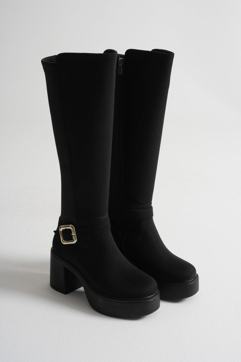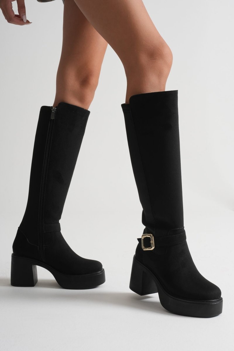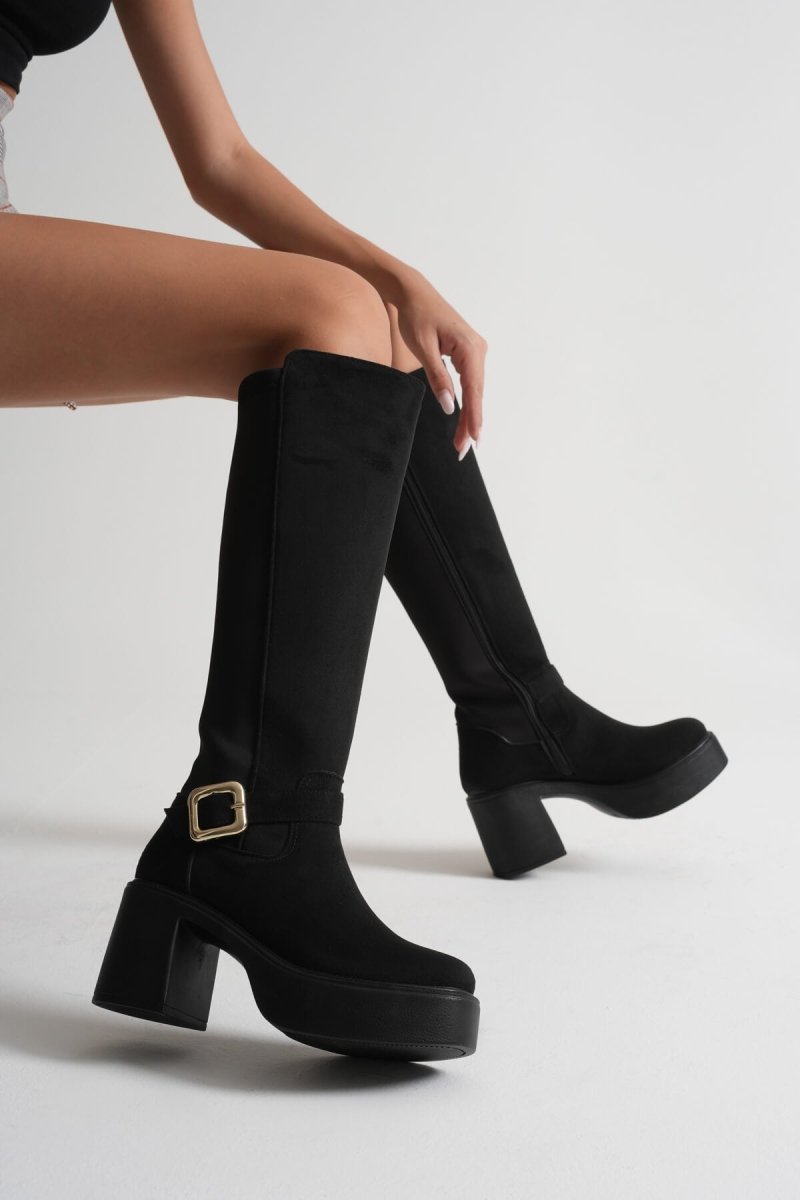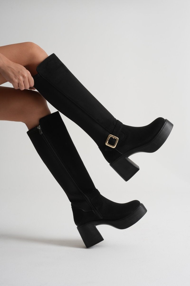 Scarpax Woly Kadın Günlük Siyah Süet Tokalı Çizme