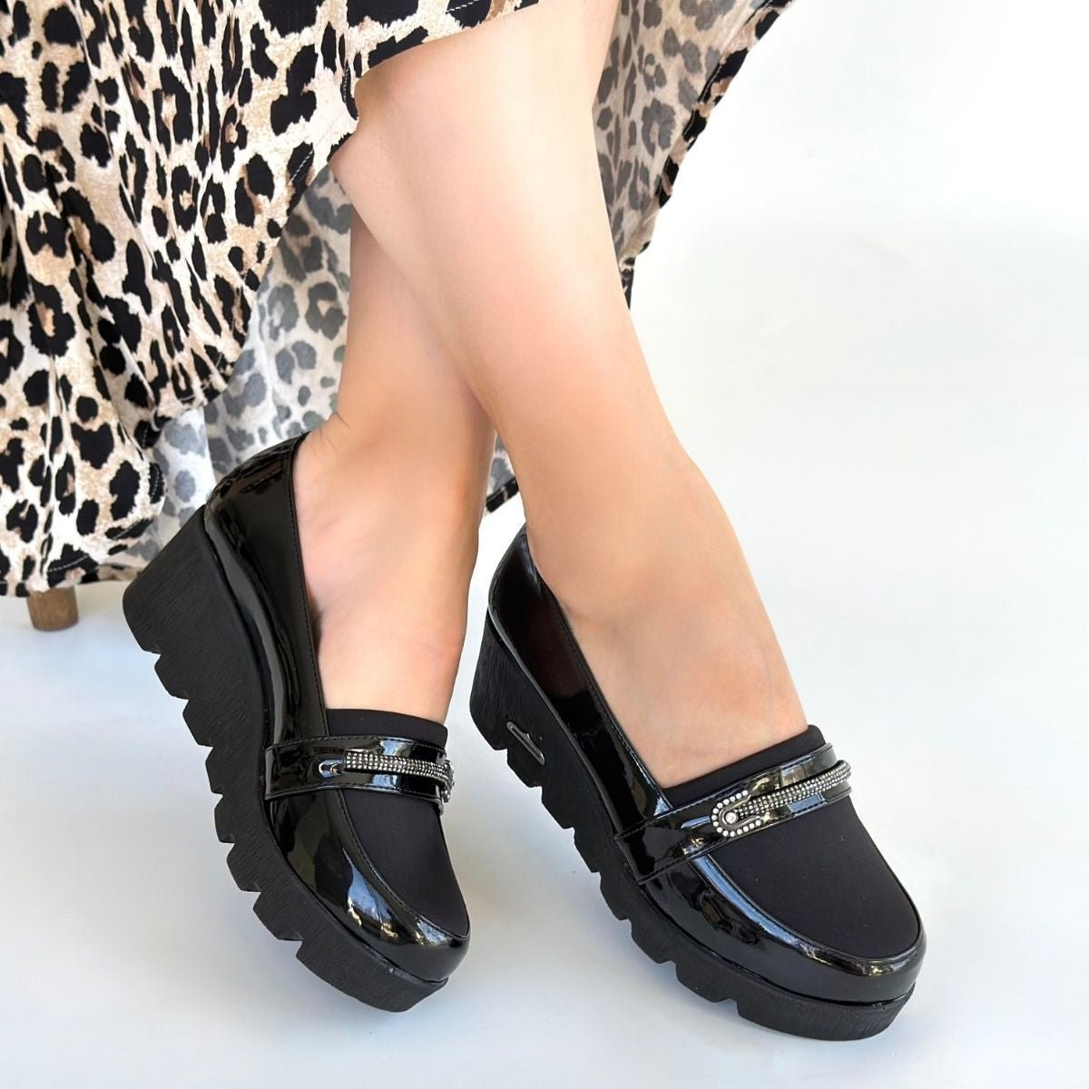 Scarpax Kear Siyah Rugan Dolgu Topuk Ayakkabı