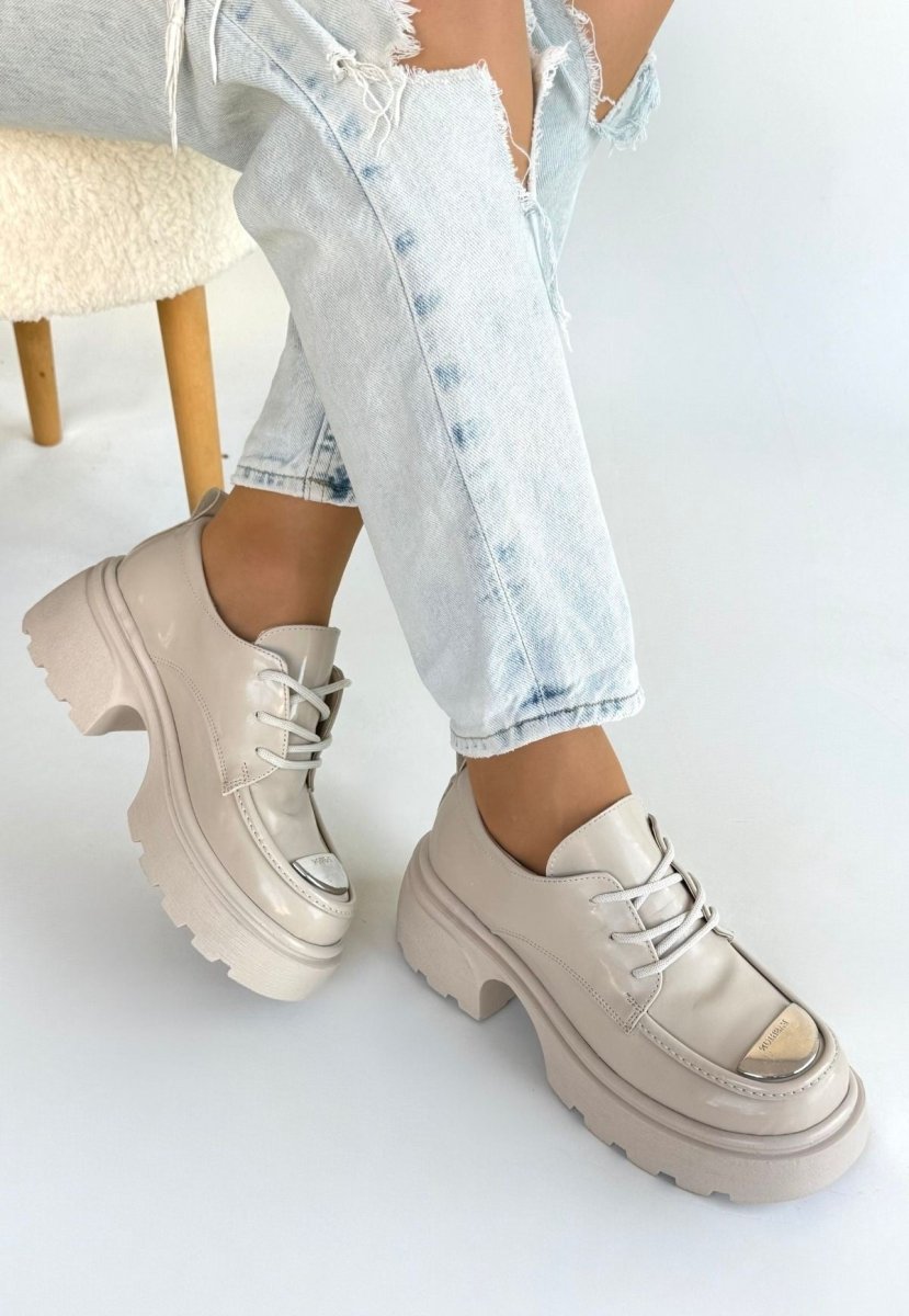 Scarpax Kiya Bej Rugan Dolgu Topuk Oxford Ayakkabı - 6 Cm Topuk, Standart Kalıp, Özel İç Taban