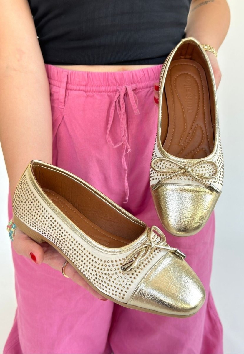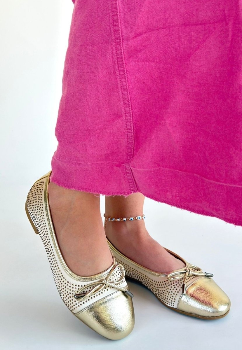 Scarpax Etya Gold Cilt Kadın Babet Ayakkabı - 1 cm Topuk, PVC Taban, Standart Kalıp