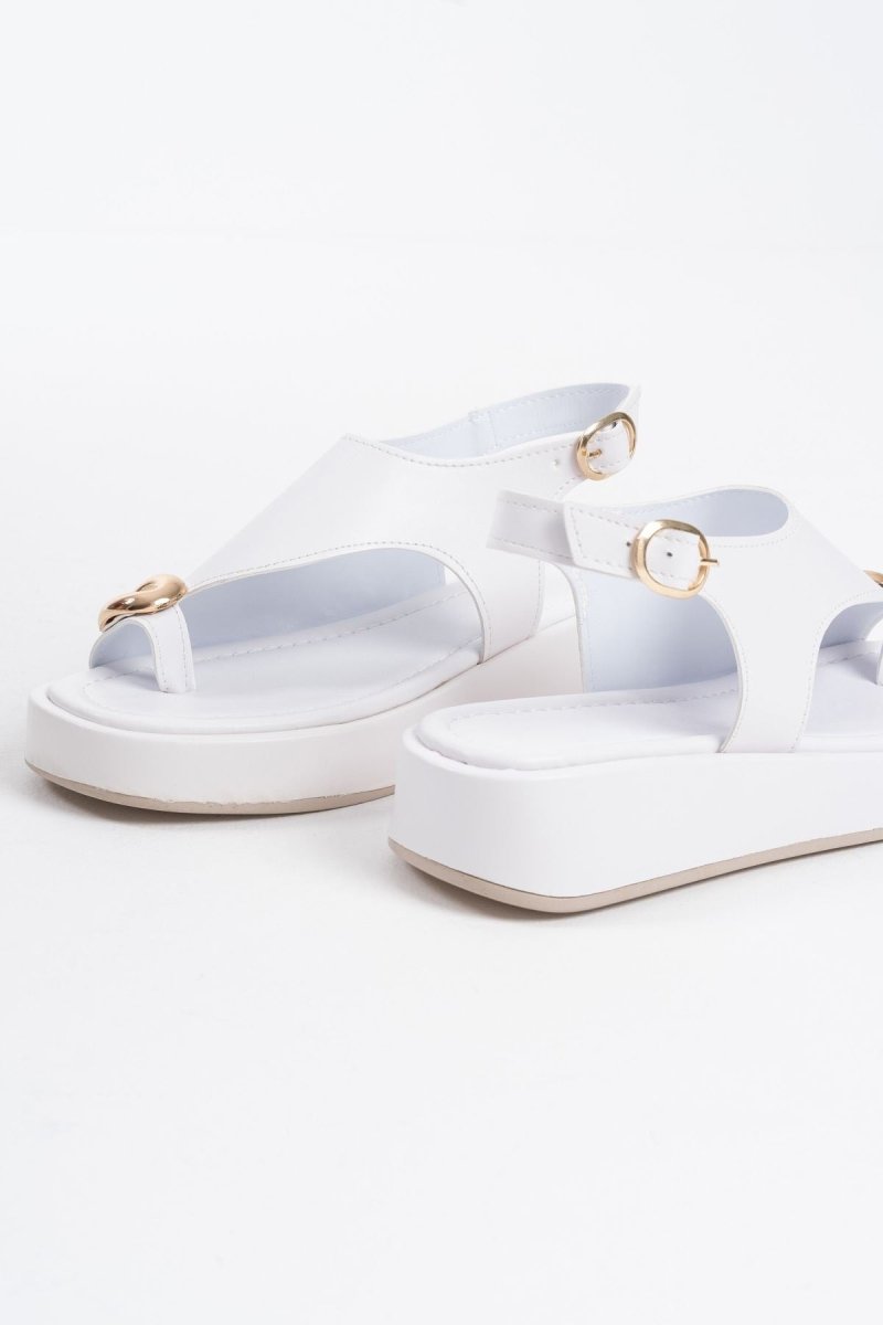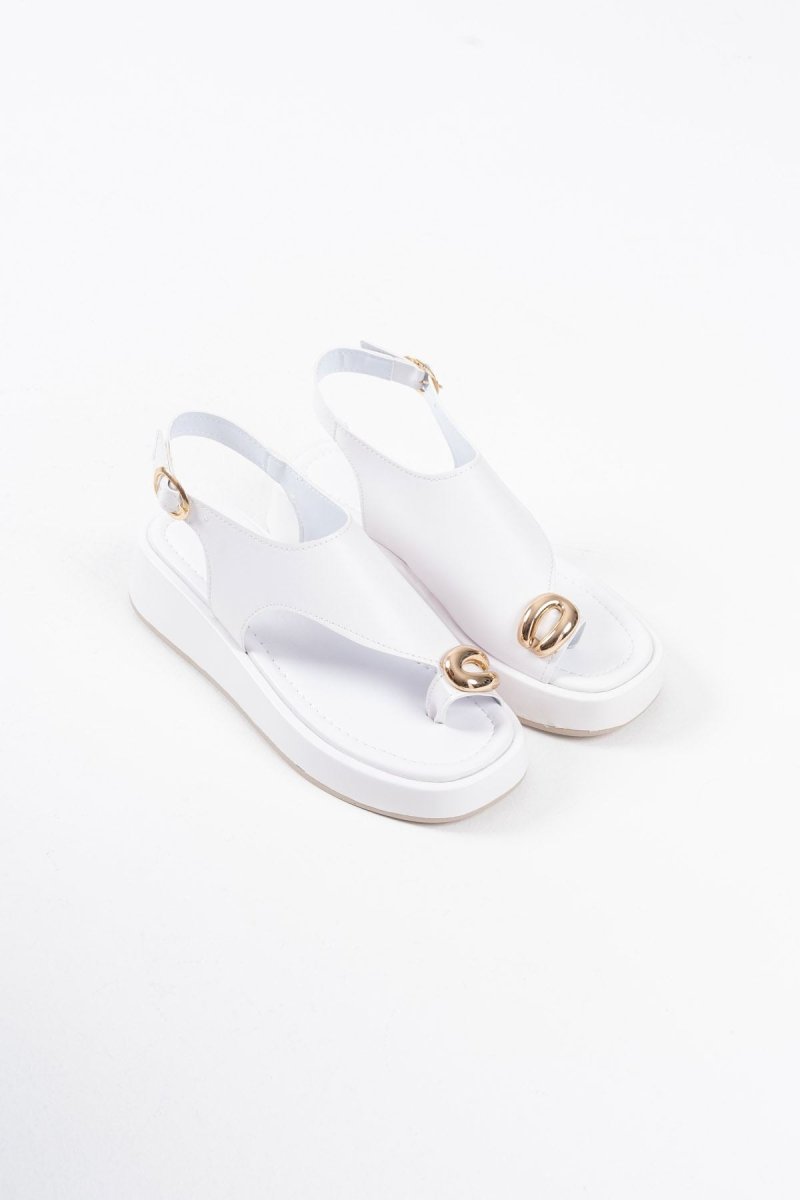 Scarpax Milena Beyaz Cilt Toka Detaylı Sandalet