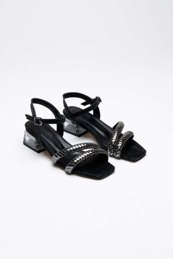 Scarpax Rule Siyah Taşlı Kadın Topuklu Sandalet