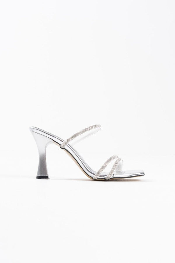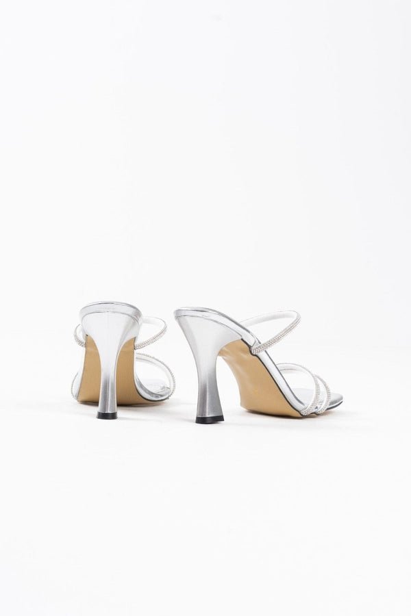 Scarpax Alvina Gümüş Ayna Taşlı Kadın Topuklu Terlik - Şık ve Konforlu Tasarım