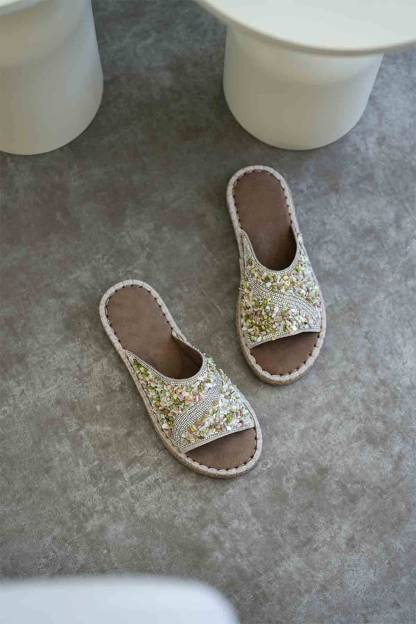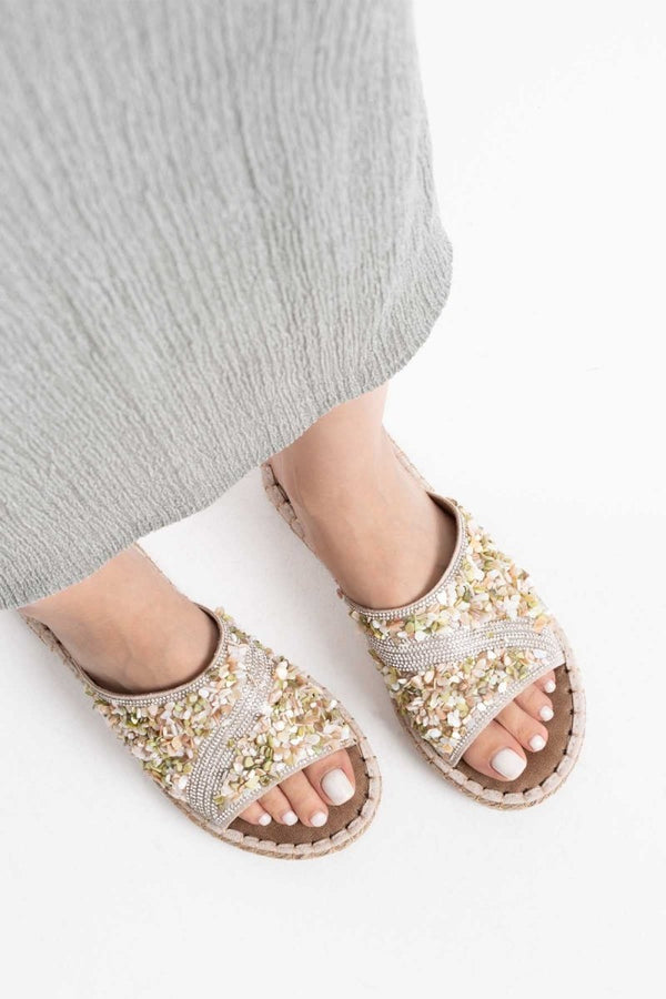 Scarpax Dennis Kadın Bej Taş İşlemeli Terlik - Şık ve Rahat Terlik Seçeneği