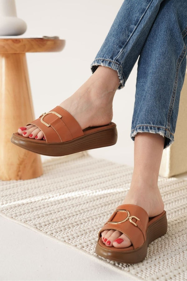 Scarpax Maria Taba Hakiki Deri Terlik - Şıklık ve Rahatlık Bir Arada