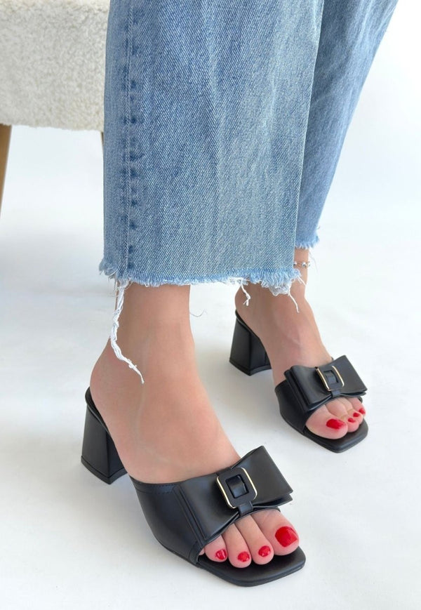 Scarpax Veor Siyah Cilt Topuklu Terlik