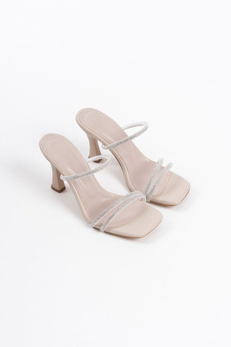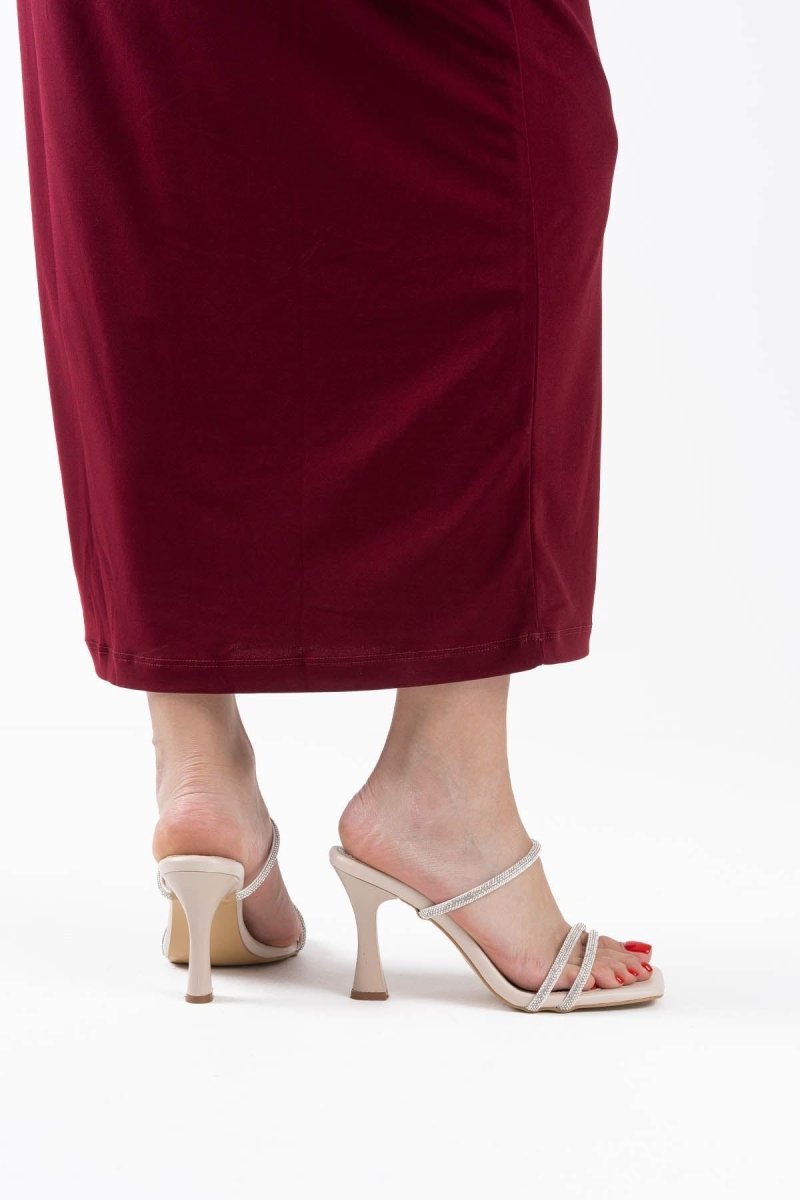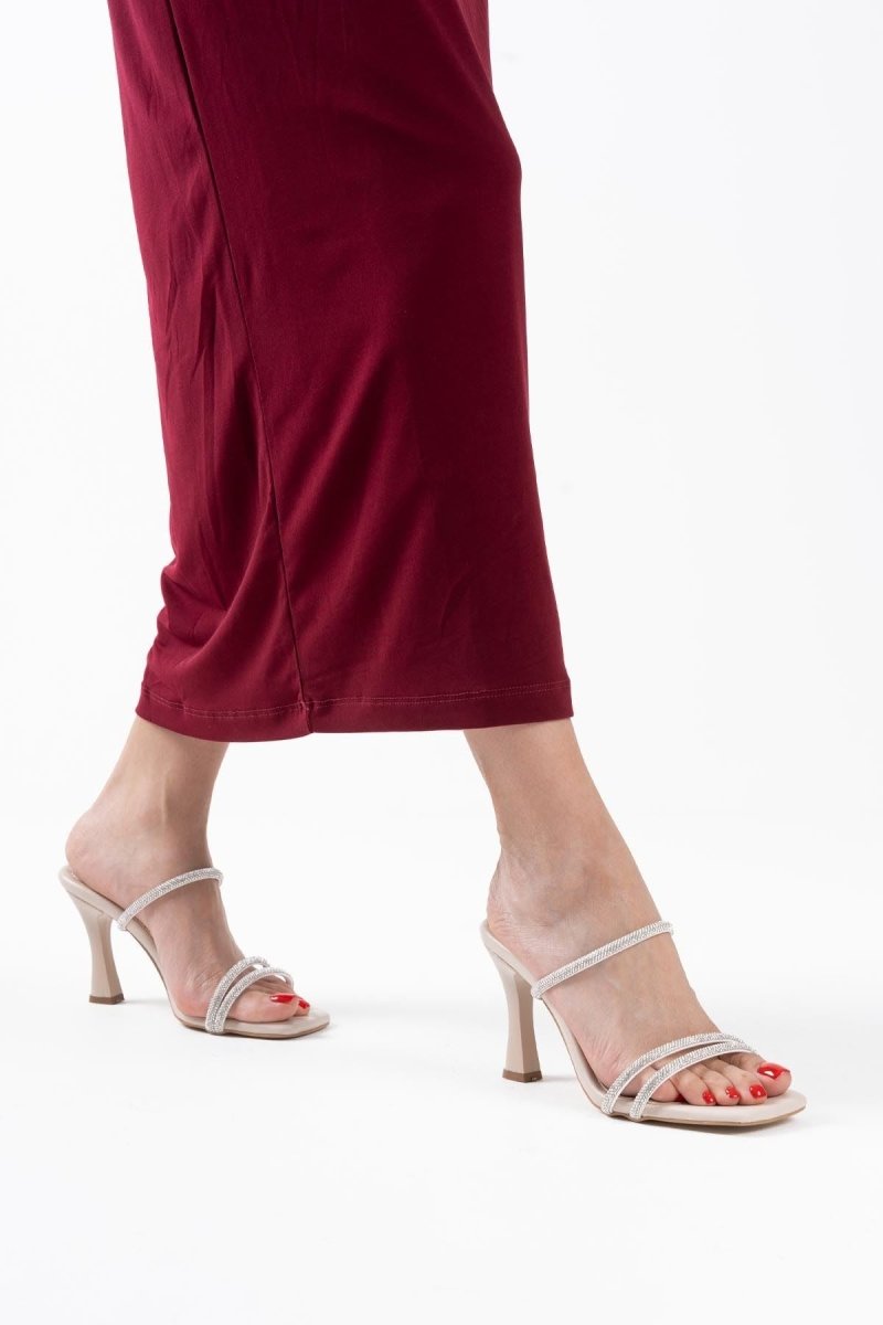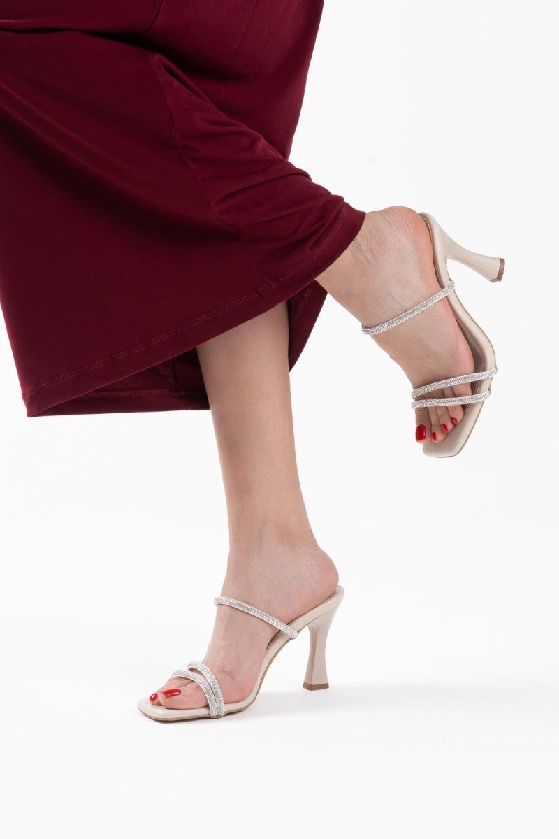 Scarpax Alvina Bej Taşlı İnce Bantlı Kadın Topuklu Terlik
