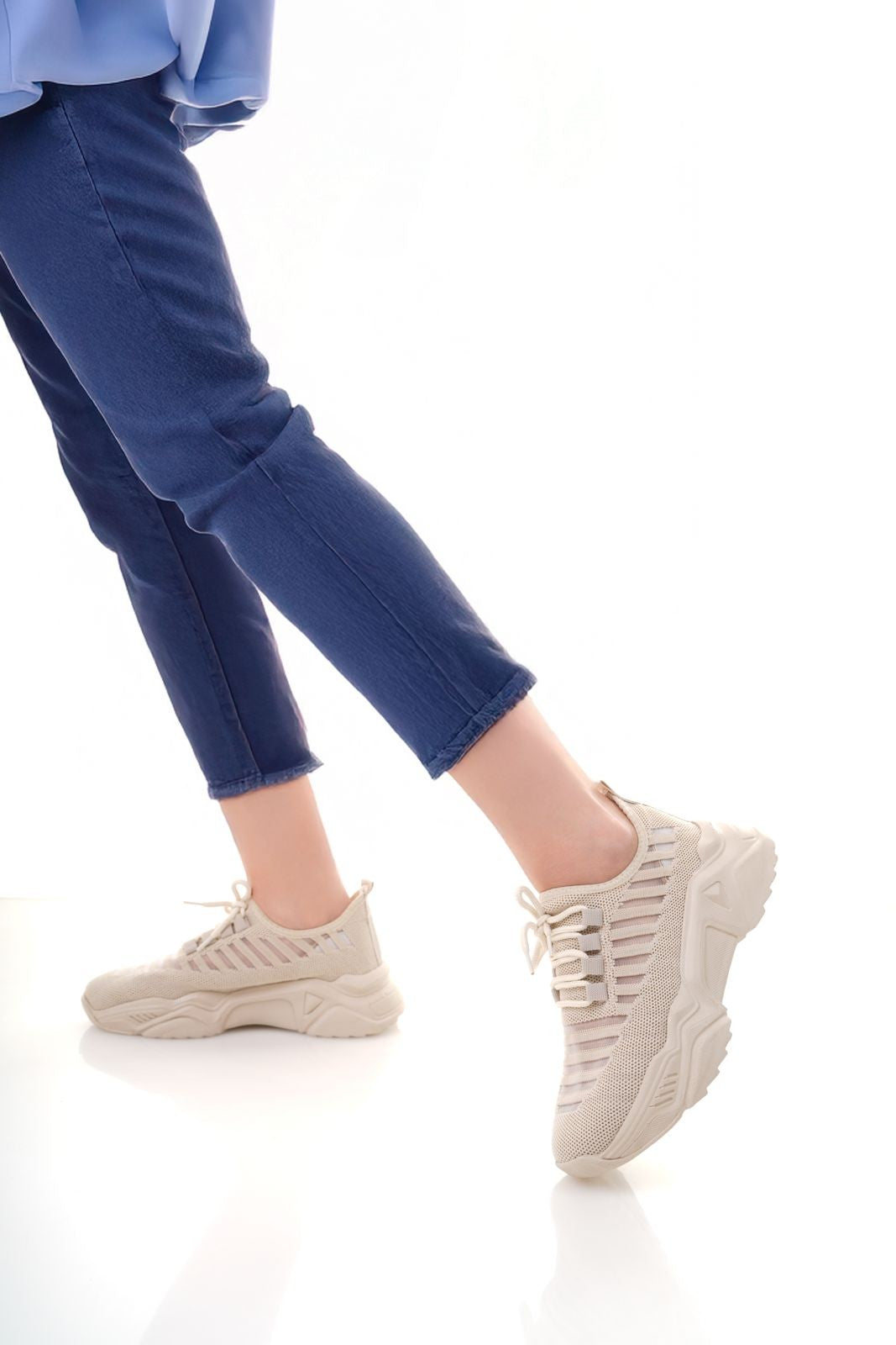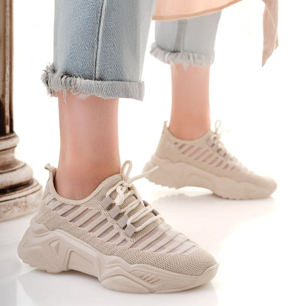 SCARPAX Ante Bej Triko Spor Ayakkabı - Ortopedik Topuk, Yüksek Konfor ve Modern Tasarım