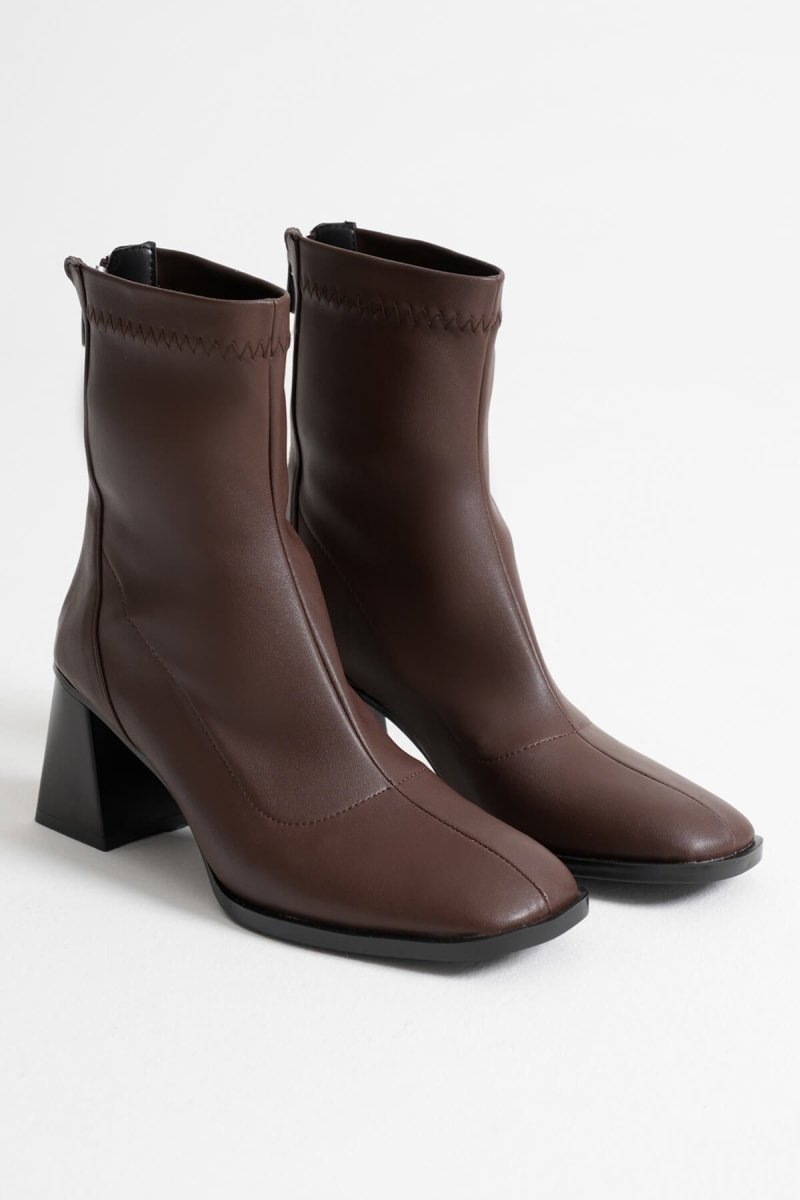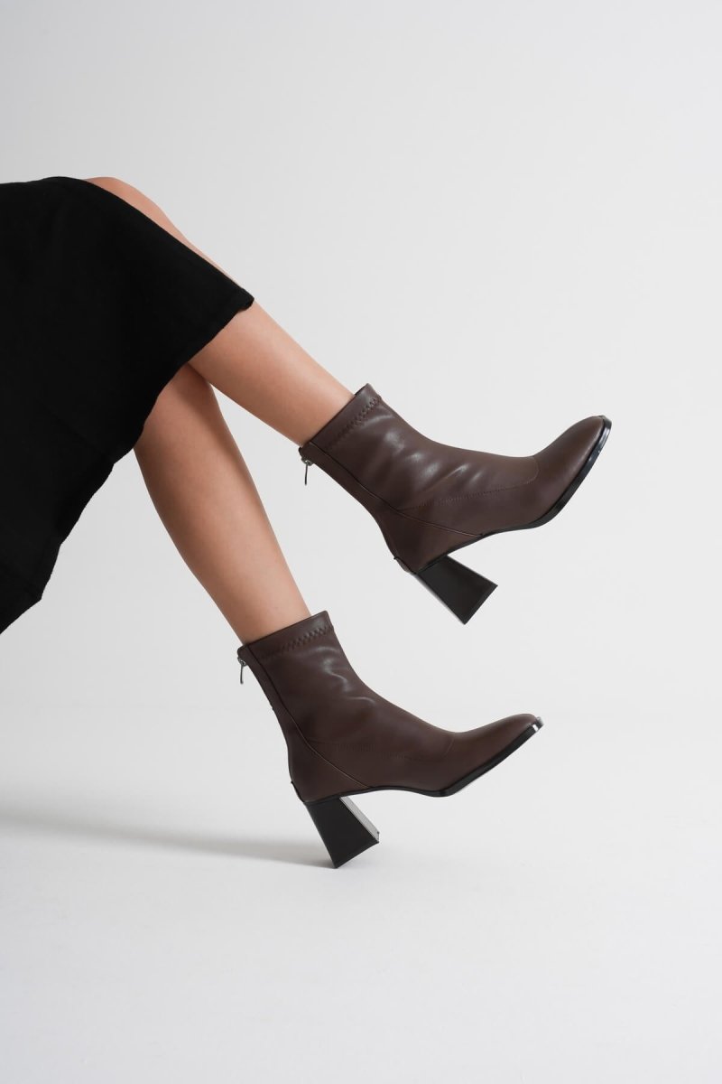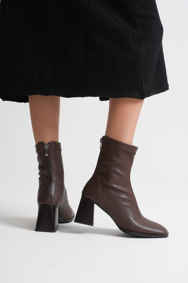 SCARPAX Arvena Acı Kahve Kalın Topuklu Streç Bot | Modern ve Şık Tasarım