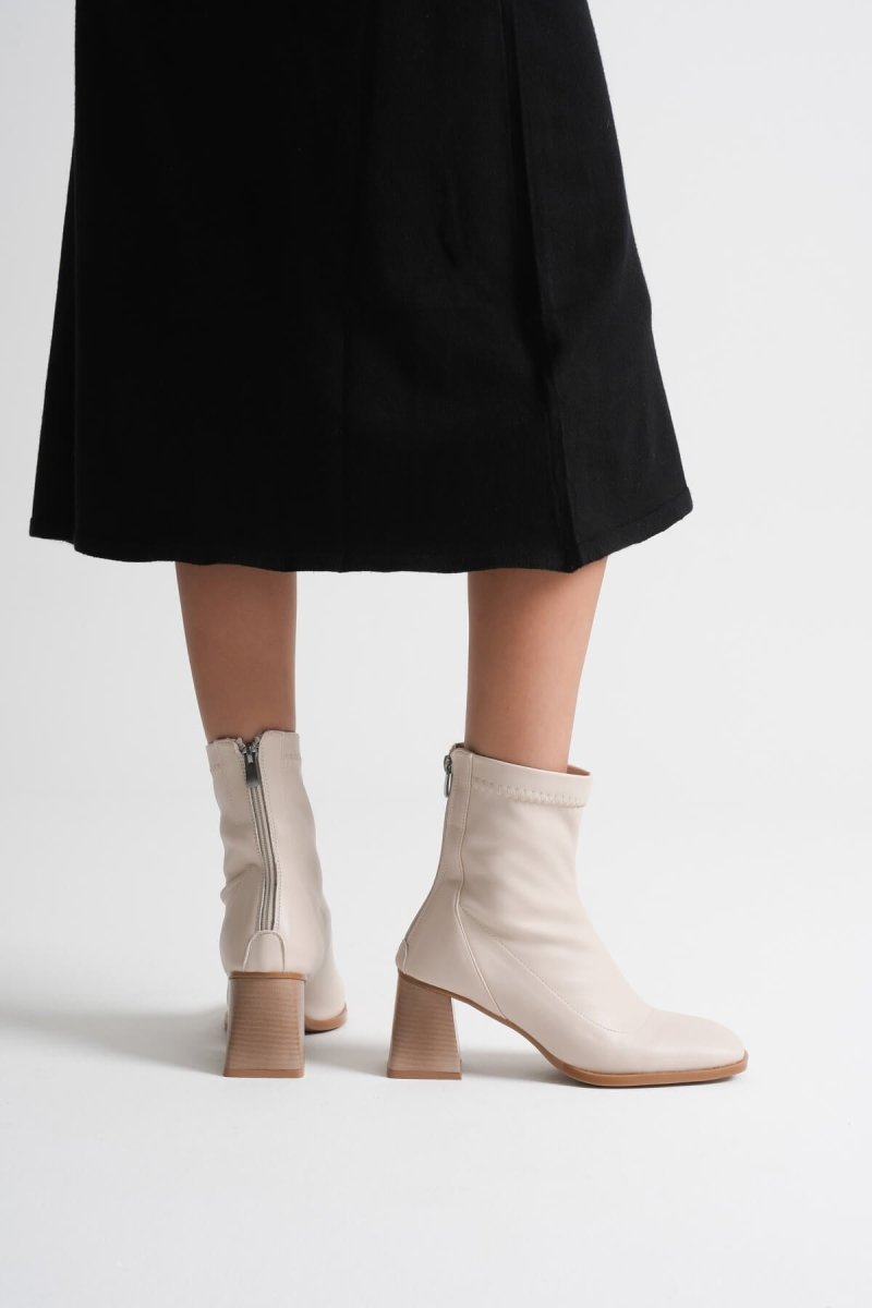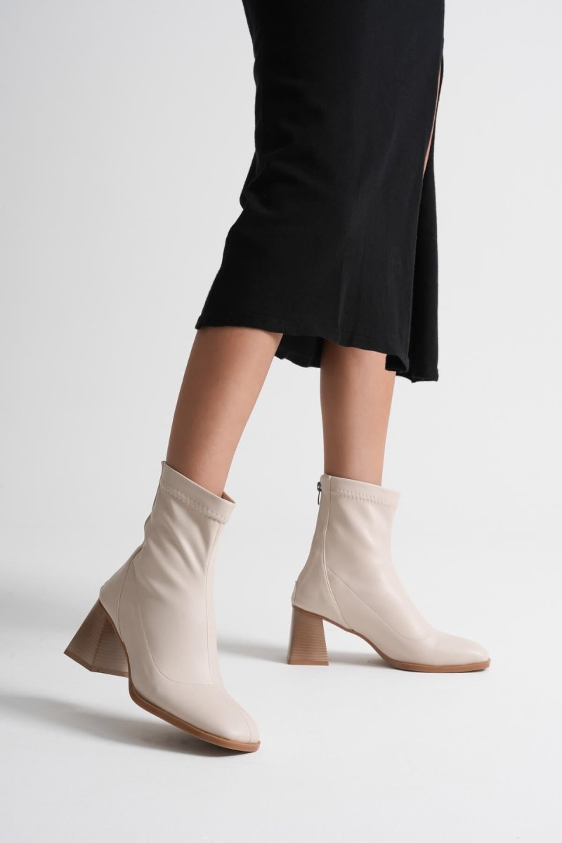 Scarpax Arvena Bej Kadın Kalın Topuklu Streç Bot - Şık ve Rahat Tasarım