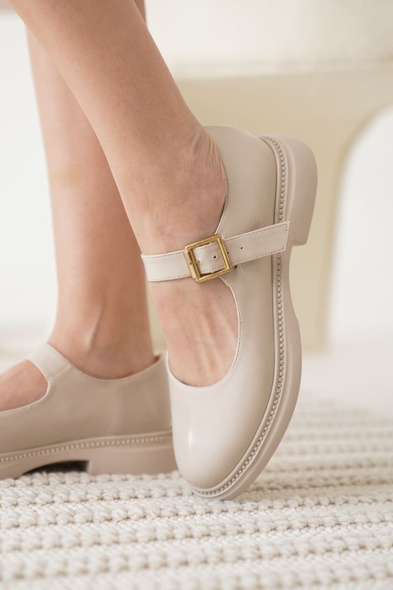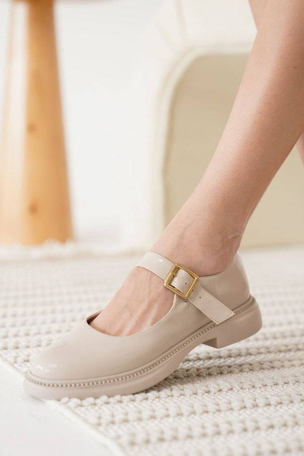Scarpax Briana Bej Rugan Mary Jane Ayakkabı Toka Detaylı Kadın Modası