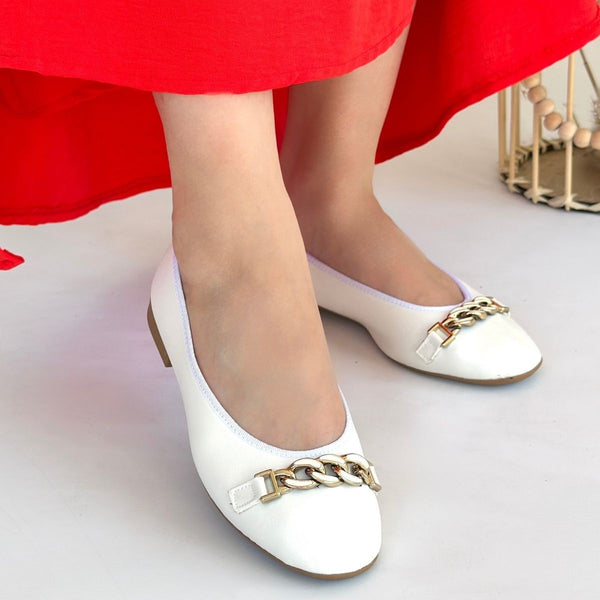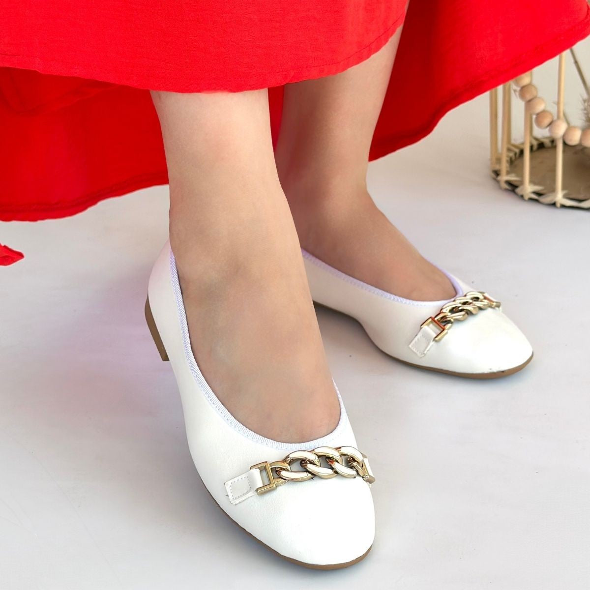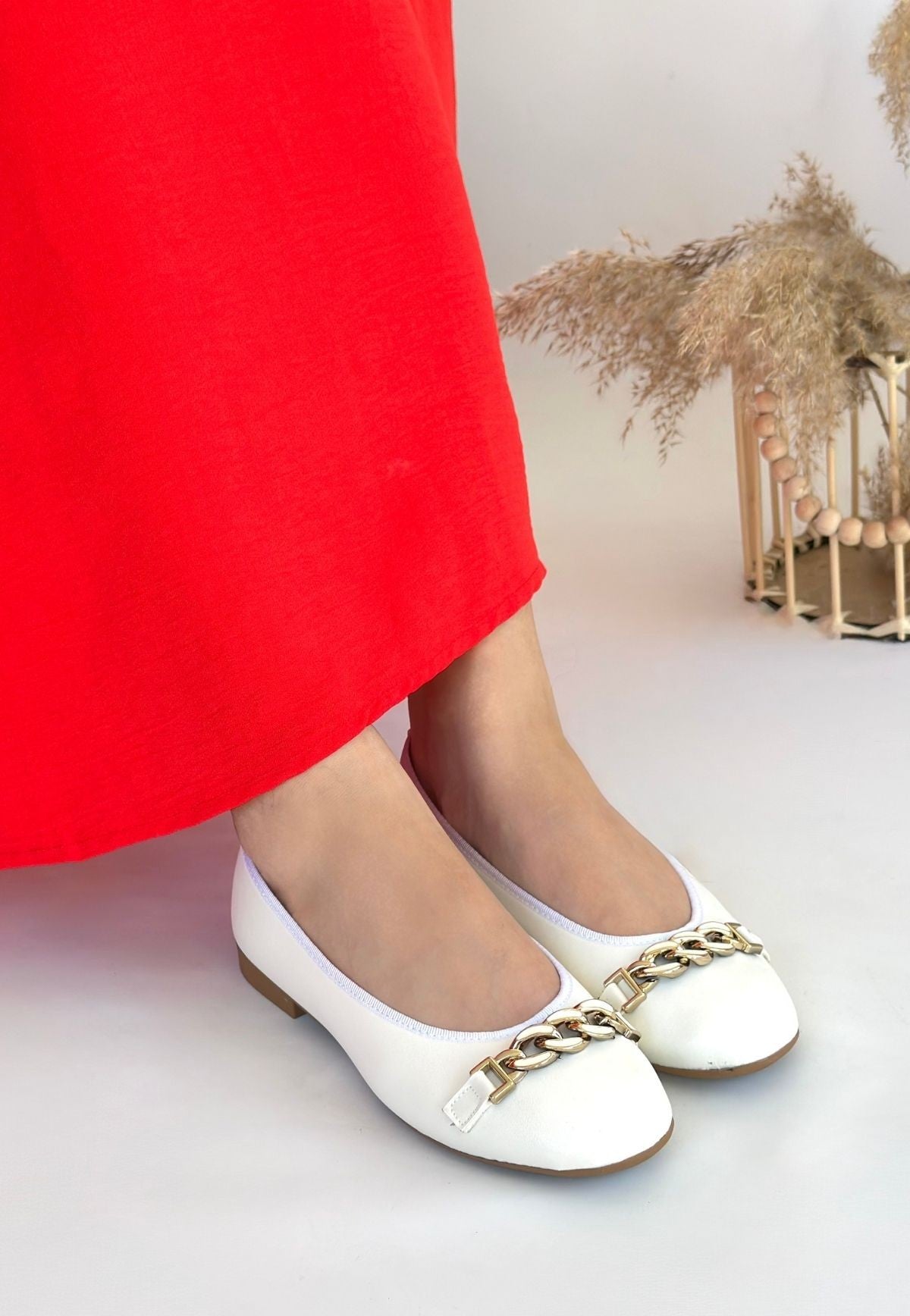 Scarpax Cleo Beyaz Cilt Babet Ayakkabı - Ortabedik Taban, 1Cm Topuk Yüksekliği, Standart Kalıp