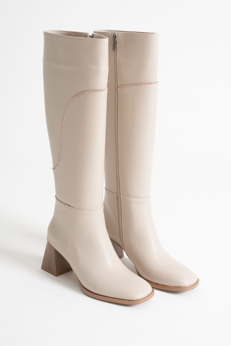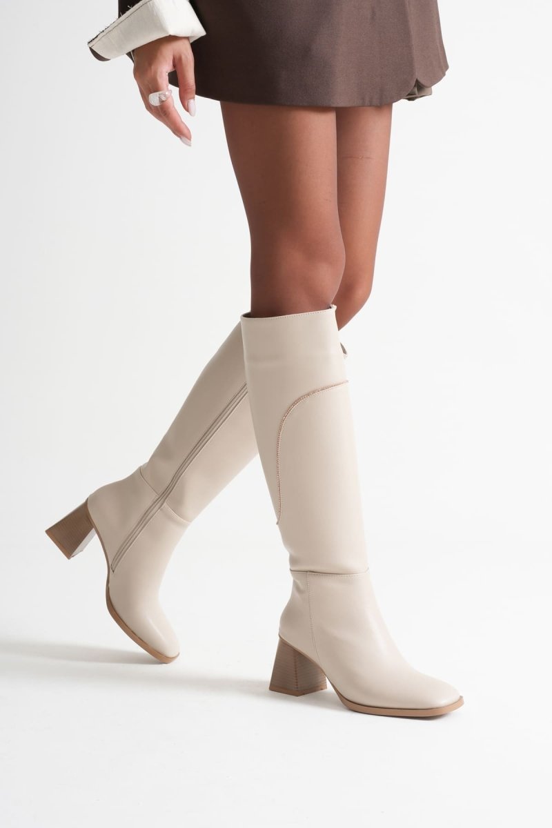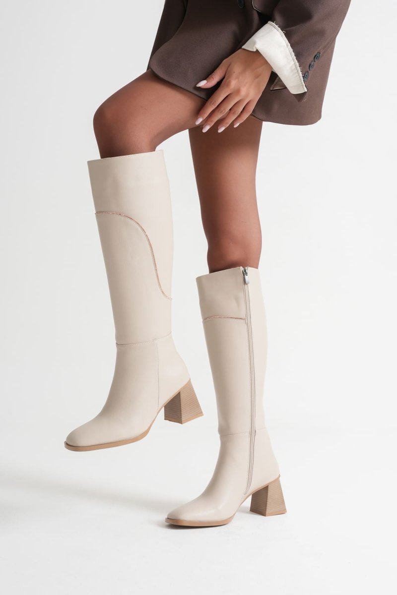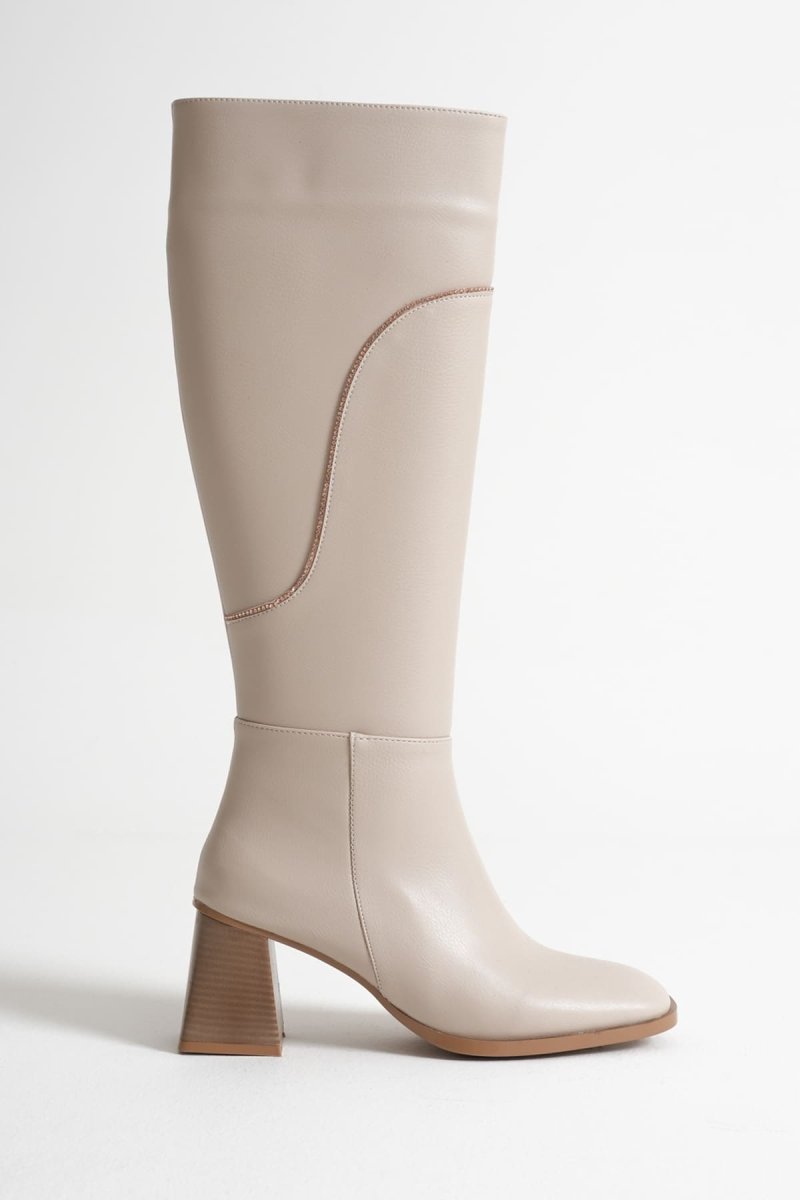 Scarpax Elora Bej Kadın Topuklu Çizme - Şık ve Rahat Tasarım
