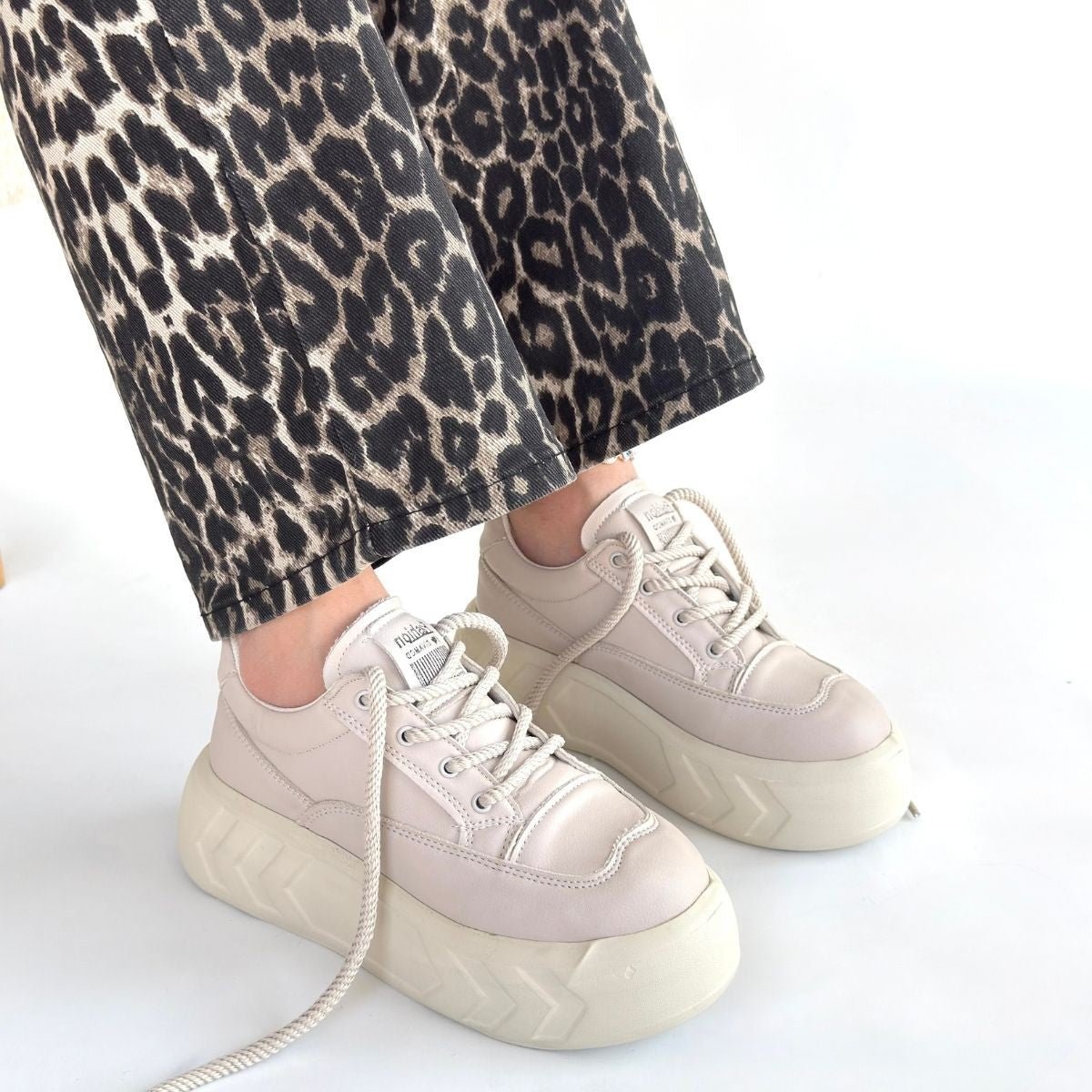Bej cilt malzemesi ile üretilen bu spor ayakkabı, hafif yapısı sayesinde gün boyu konforlu bir deneyim sunar. Standart ayak ölçülerine göre tam kalıp özelliği ile her ayak yapısına uyum sağlar. Günlük koşuşturmacanızda şıklığı ve rahatlığı birlikte arıyorsanız, Emwa cilt bağcıklı spor ayakkabı tam da sizin için ideal bir tercih olacaktır.
