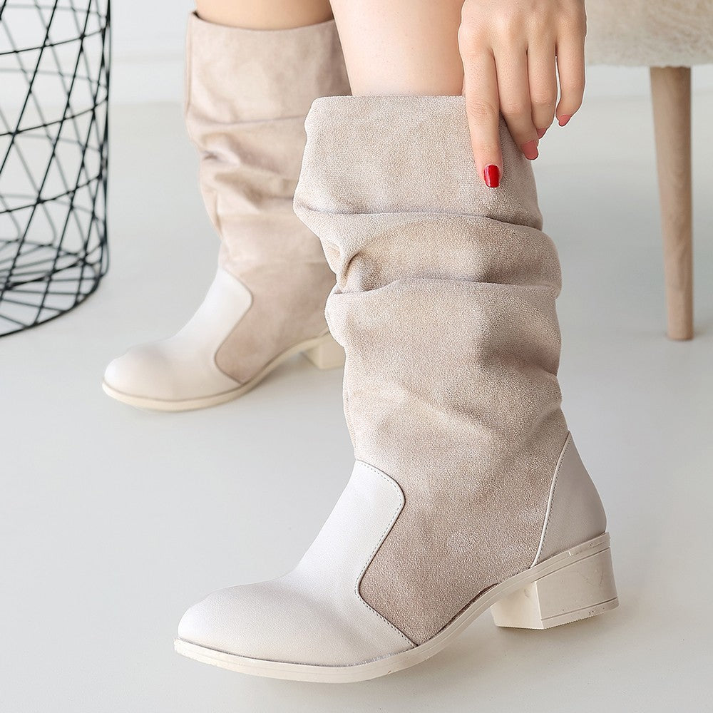 Scarpax Bej Süet Detaylı Körüklü Çizme - 3 cm Topuk, Termo Taban, Standart Kalıp