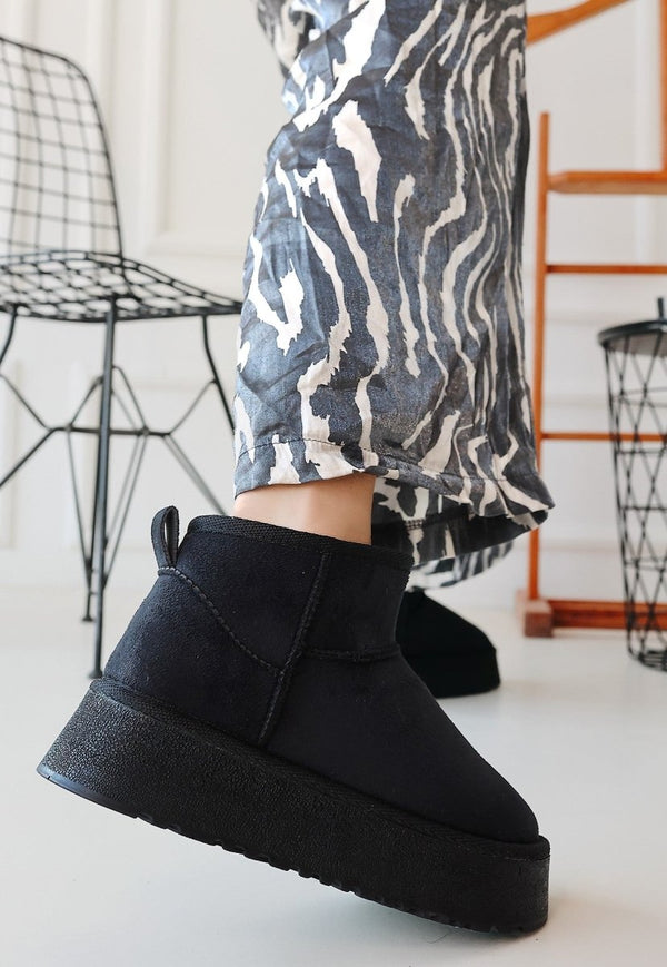 Scarpax Linne Siyah Süet Bot - İçi Kürklü, 4 cm Topuk, Tam Kalıp