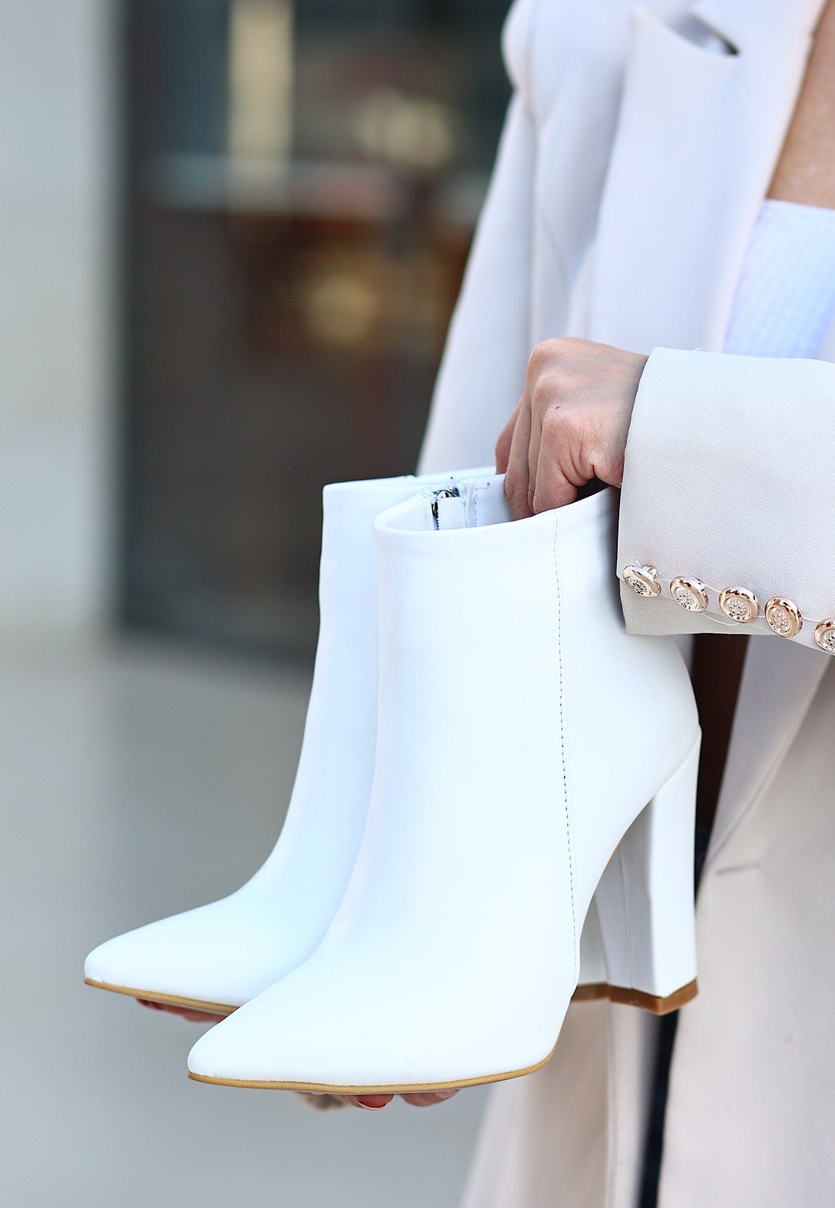 Bu bot, sade ama etkileyici tasarımı sayesinde her türlü kıyafetle kolayca kombinlenebilir. Beyaz rengi, her dolabın yıldızı olmayı vaat ederken, cilt malzemesi sayesinde gün boyu konfor sağlar. Yandan fermuarlı yapısı, giyip çıkarmayı son derece kolay hale getirir.