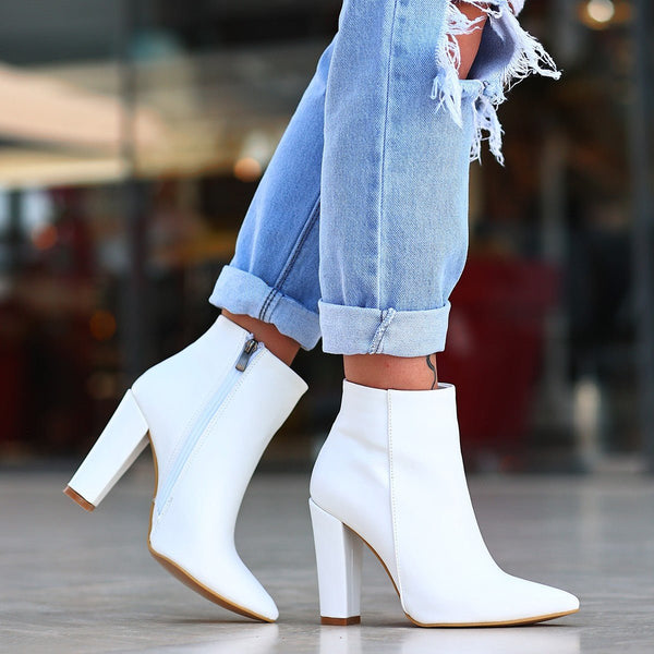 Scarpax Beyaz Cilt Topuklu Bot - 10 cm Topuklu, Yandan Fermuarlı, Şık Tasarım