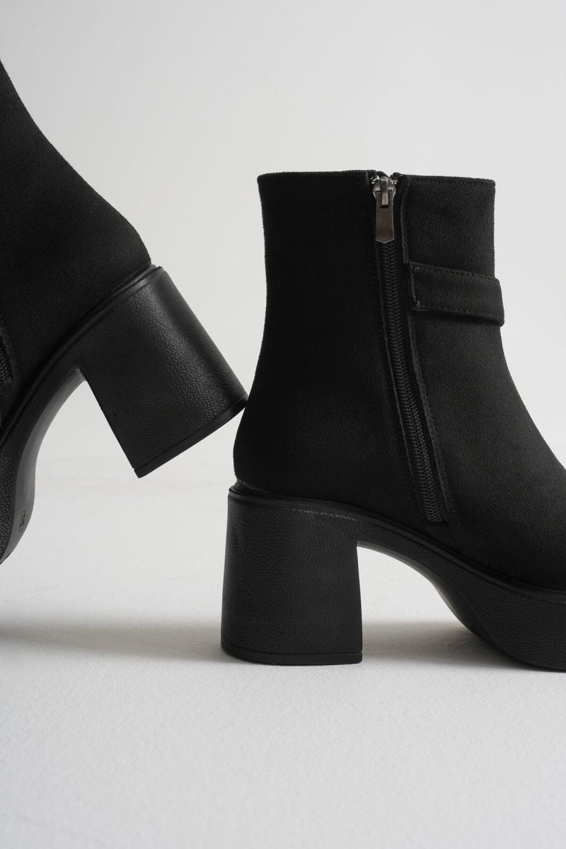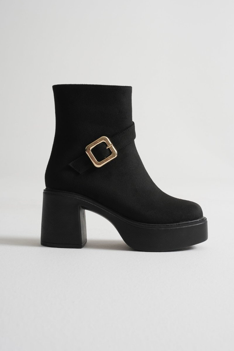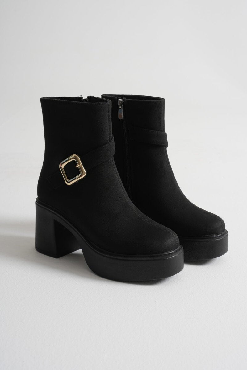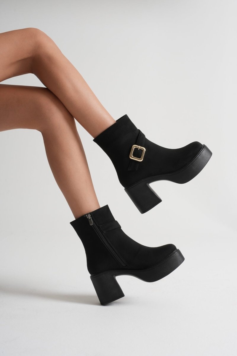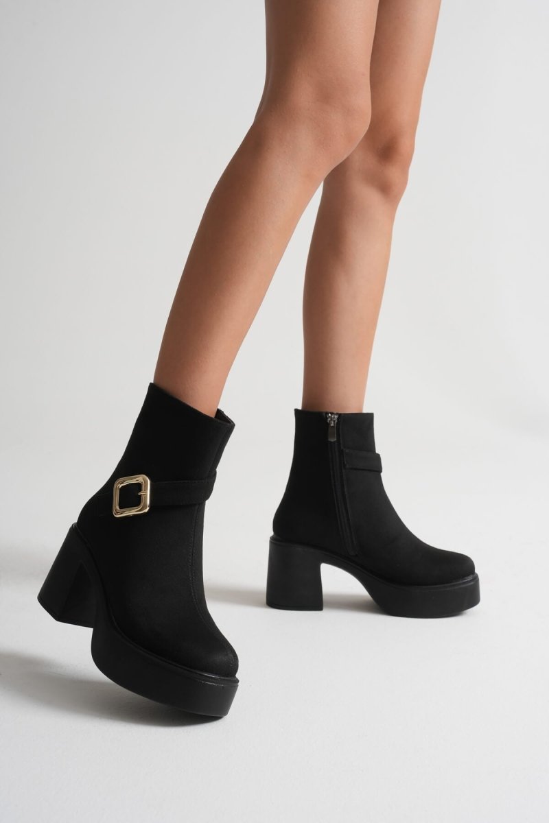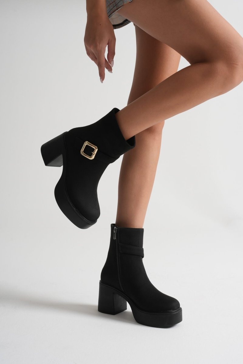 Scarpax Mona Kadın Siyah Süet Tokalı Topuklu Bot