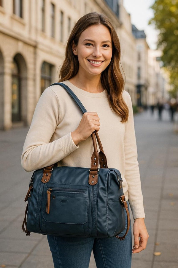 Kaliteli suni deri materyali, çantanın hem dayanıklılığını hem de estetik görünümünü sağlar. Zarif mavi rengi, her kıyafetle kombinlenebilme özelliğiyle, çok yönlü bir parça olma niteliği taşır. Hafif yapısı sayesinde taşıması oldukça kolaydır. Günlük koşuştur macalarınızda, tüm eşyalarınızı düzenli bir şekilde taşımanıza yardımcı olur.