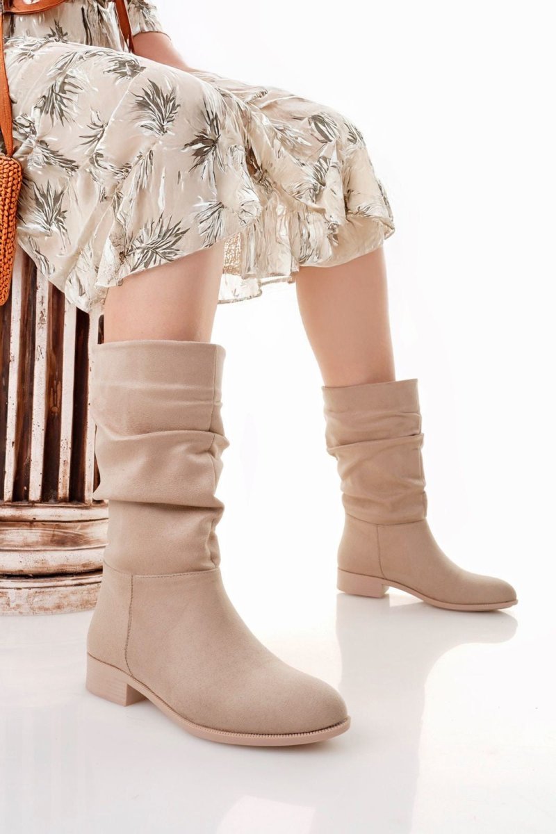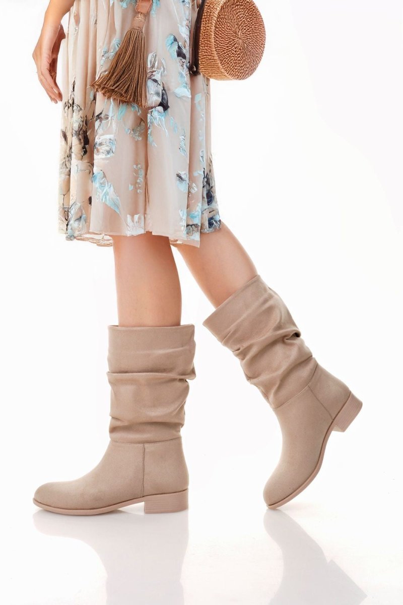 Bej rengiyle şıklığı ve zarafeti yansıtan Scarpax Plod Bej Süet Çizme, sezonun vazgeçilmez parçalarından biridir. Düz ve şık tasarımıyla, her türlü kombin ile uyum sağlar. İster gündelik kullanımda, ister özel davetlerde rahatlıkla tercih edebilirsiniz.