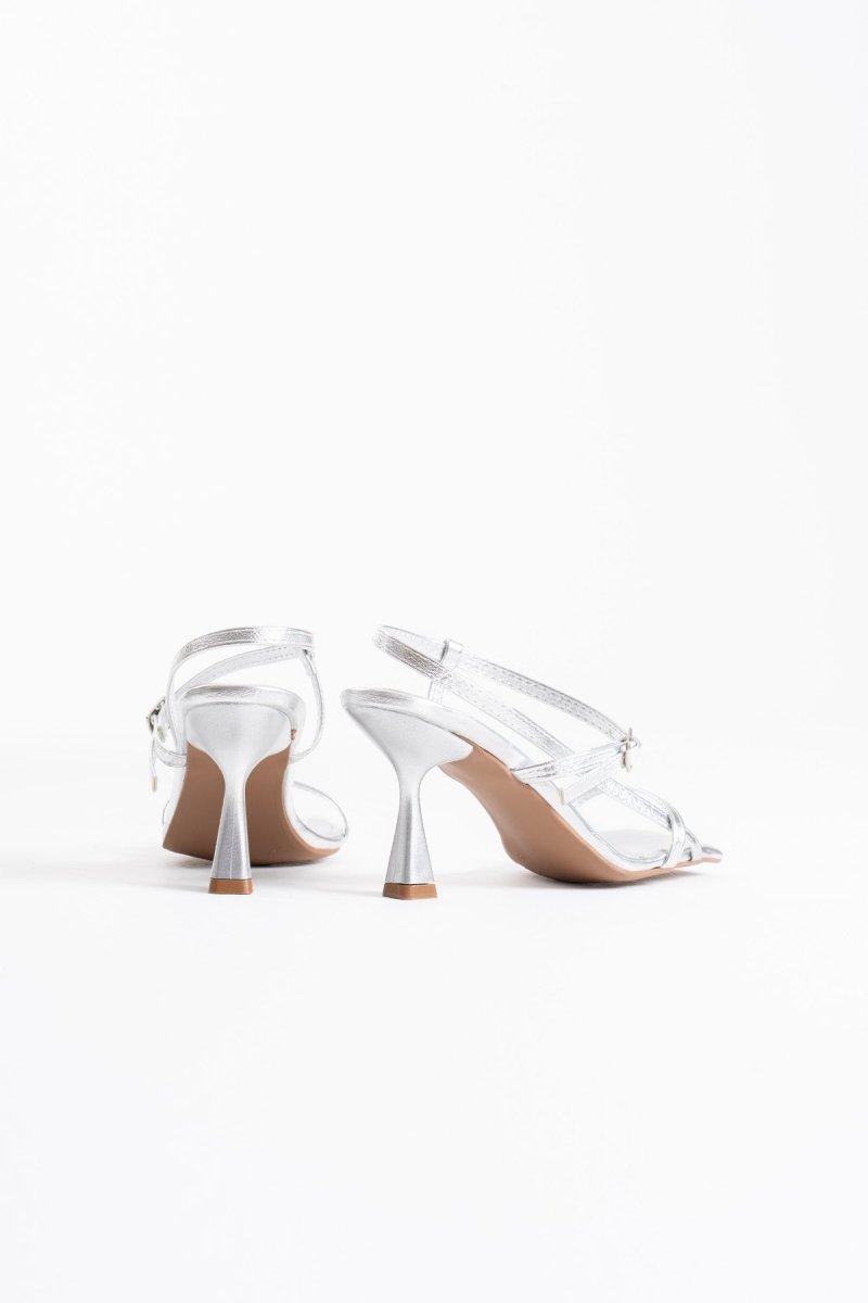 Bu topuklu sandalet, kaliteli malzemeler kullanılarak üretilmiştir. Gümüş renk tonu, modern ve çağdaş bir görünüm sunarken, ayağınıza rahatlıkla oturarak gün boyu konfor sağlar. Her adımda destek sağlayan yapısı ile hem şıklığı hem de konforu bir arada sunar.