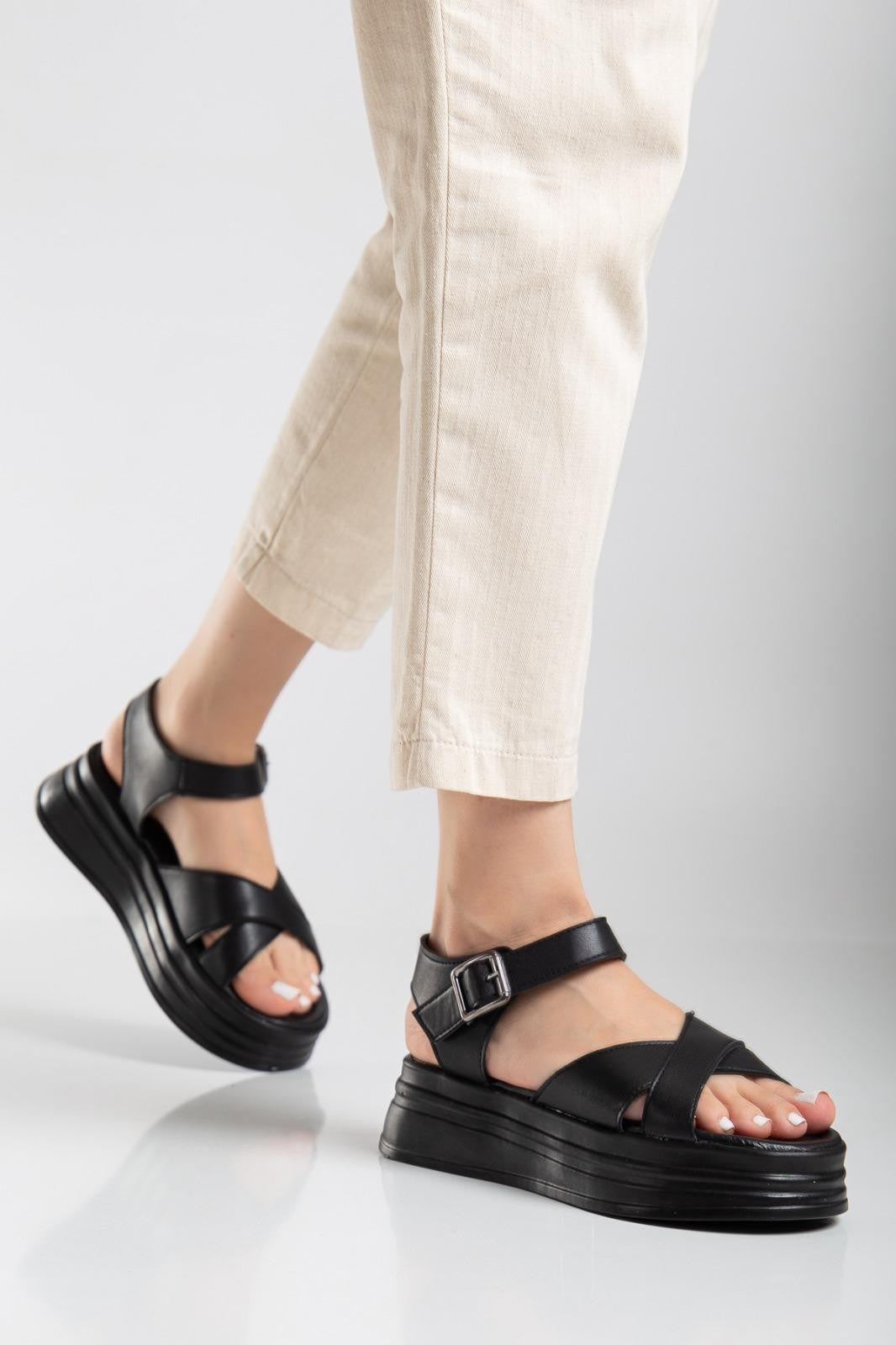 Scarpax Sibna Siyah Cilt Kemerli Sandalet