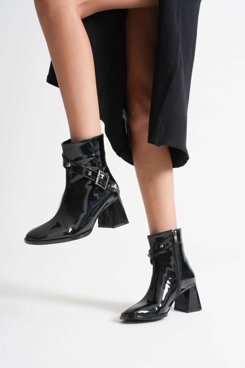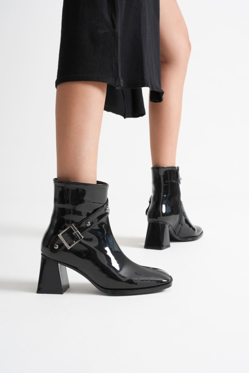 Scarpax Vera Kadın Siyah Rugan Topuklu Bot