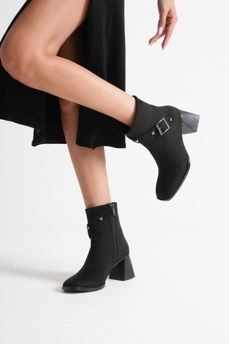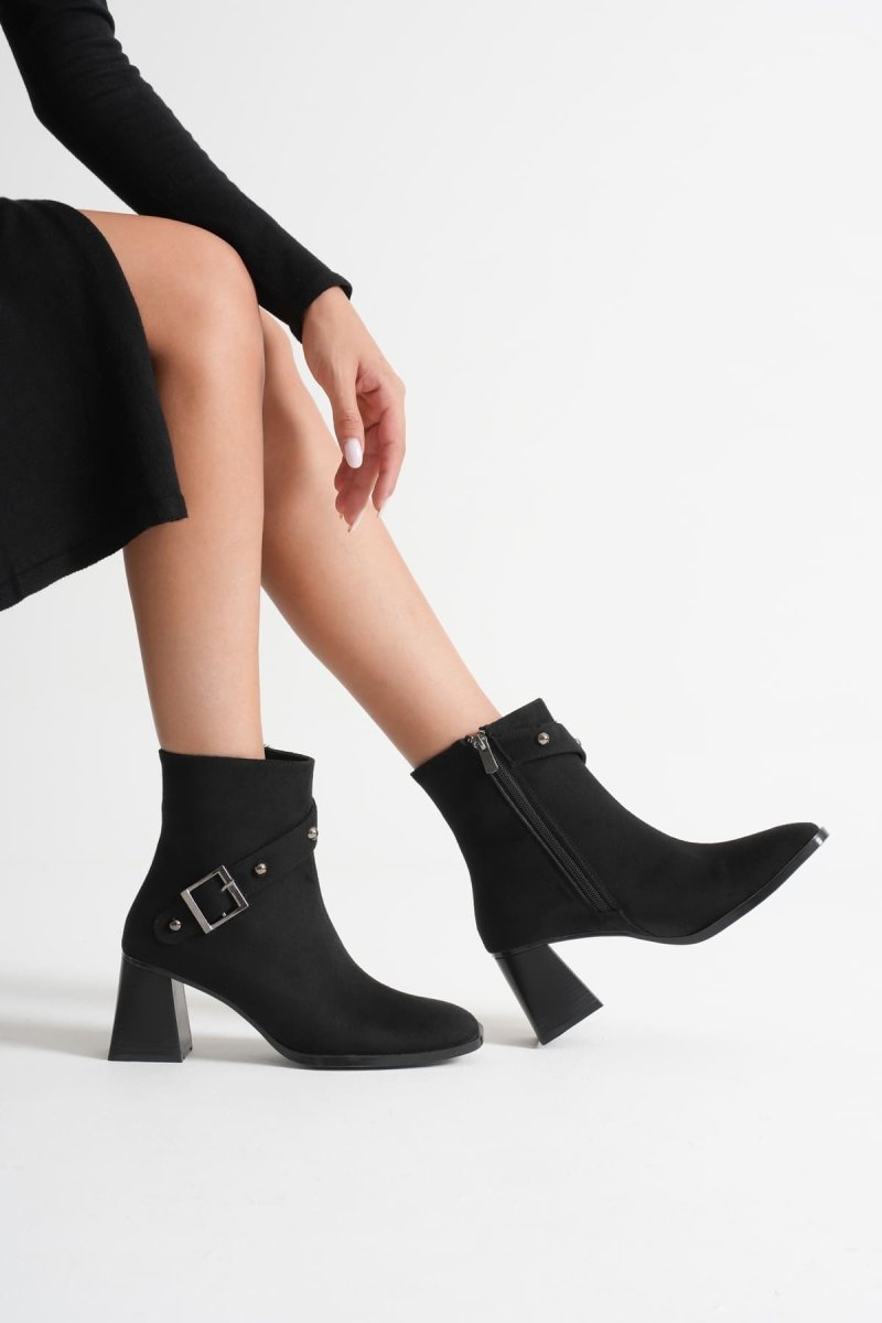 Scarpax kalitesiyle üretilen bu topuklu bot, şıklığının yanı sıra sağladığı konforla da ön plana çıkmaktadır. İnce topuk tasarımı zarif bir duruş sergilerken, yumuşak süet dokusu ayaklarınızı rahatsız etmez. Özellikle soğuk havalarda tercih edebileceğiniz bu bot, hem sıcak tutar hem de şıklığınızı tamamlar.