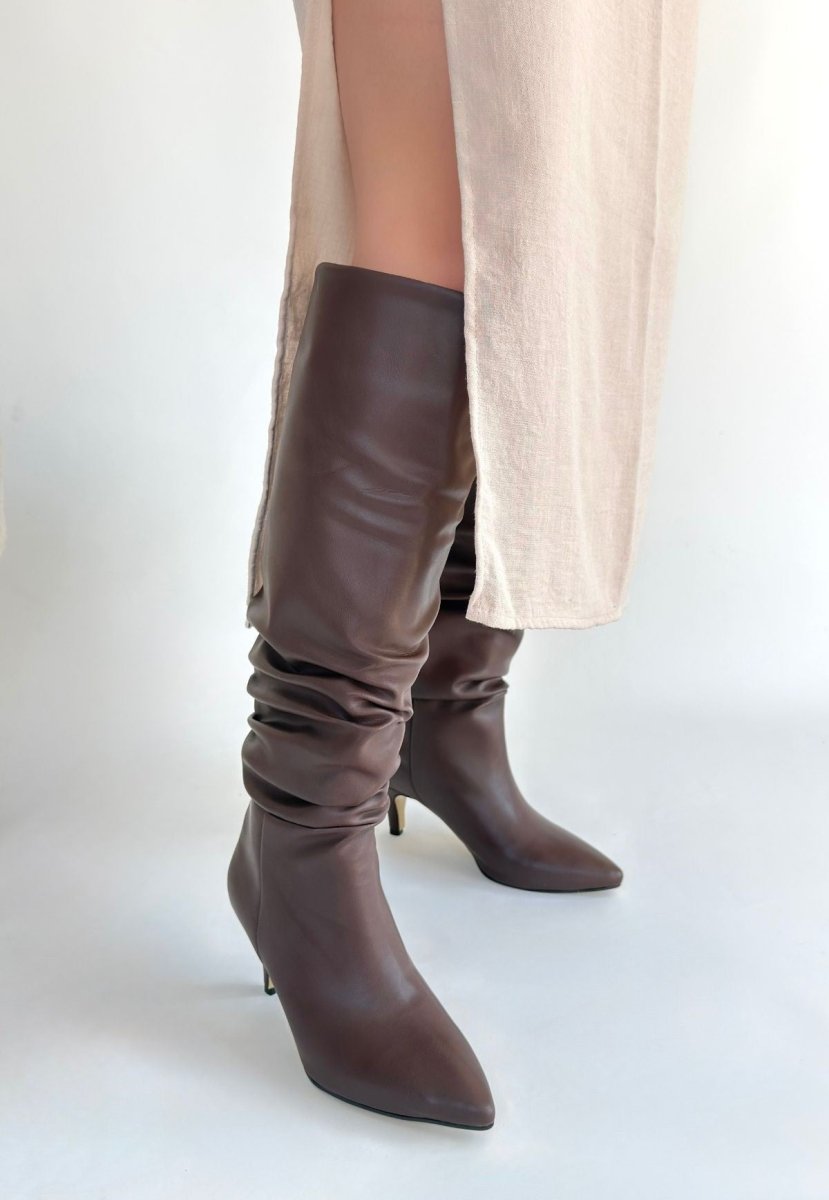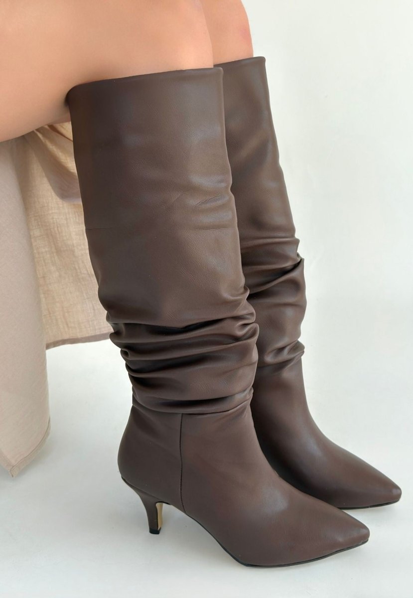 Scarpax Zelya Kahverengi Cilt Topuklu Çizme