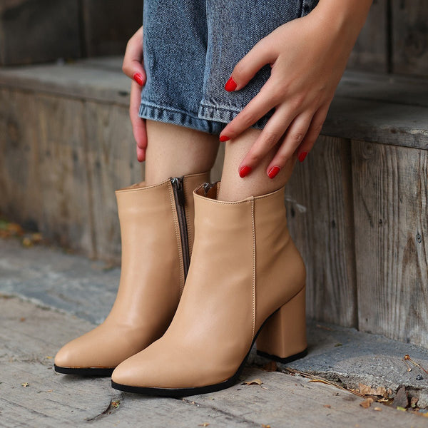 Scarpax Cream Skin Heeled Boots with Side Zipper 7 cm Heel Height