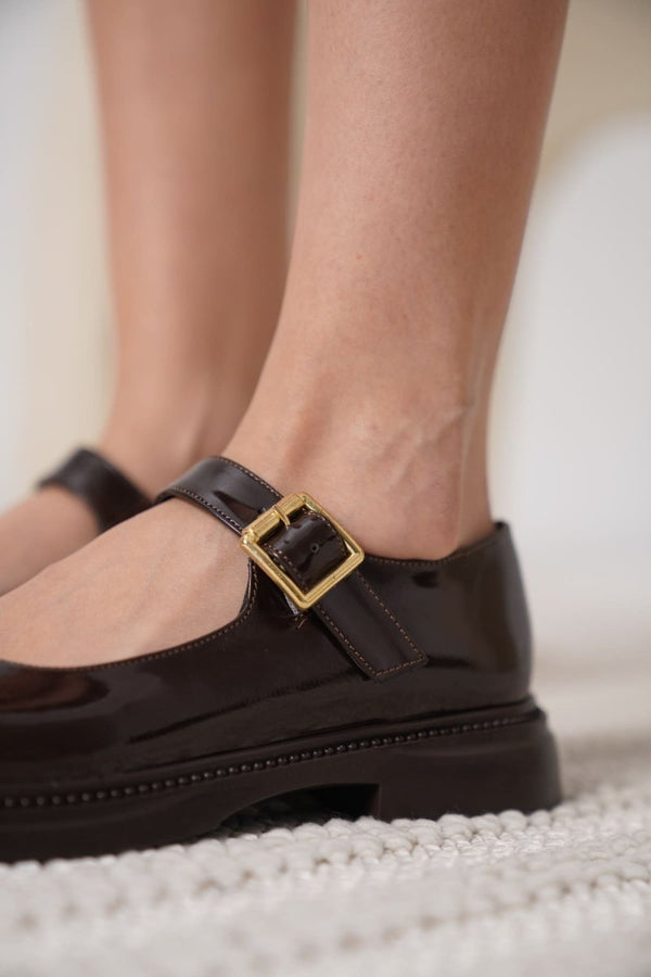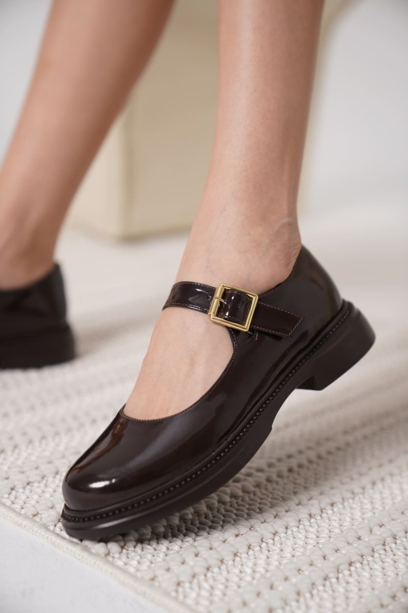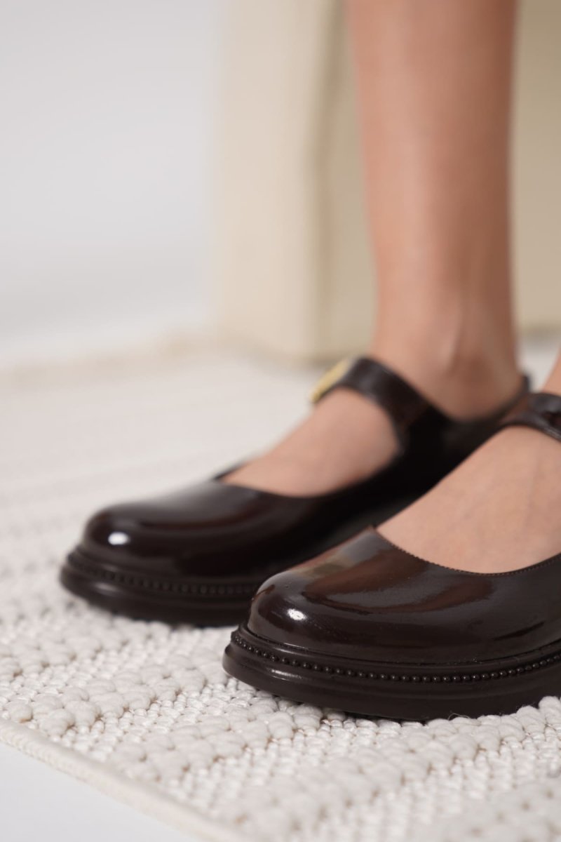 Scarpax Briana Acı Kahve Rugan Mary Jane Ayakkabı