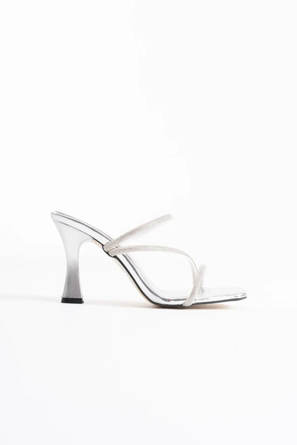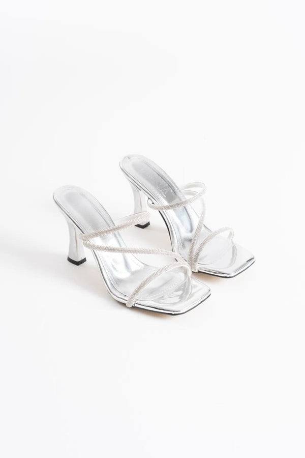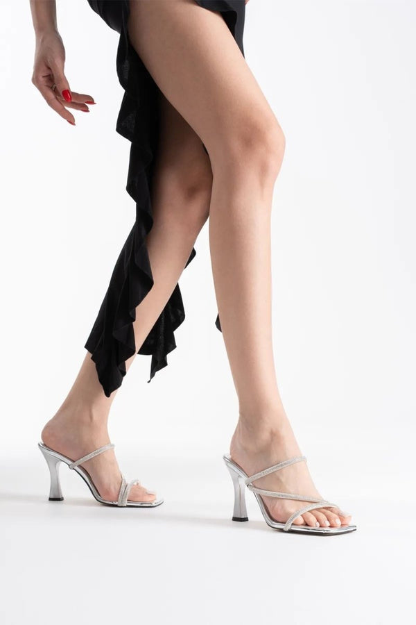 Scarpax Capella Kadın Gümüş Taşlı 7 cm Topuklu Terlik - Şık ve Zarif Tasarım