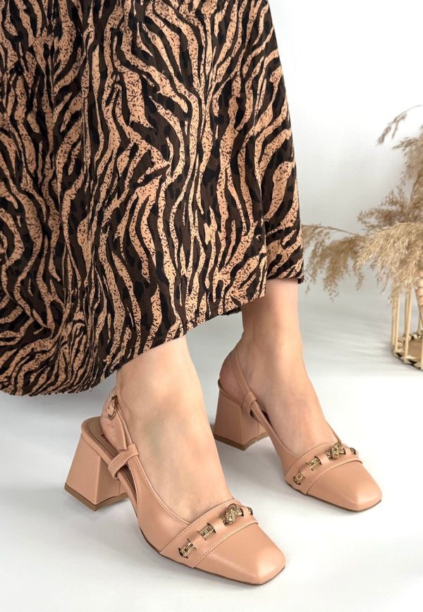 Scarpax Elliy 7 Cm Topuklu Nude Cilt Ayakkabı - Standart Kalıp ve Jurdan Taban
